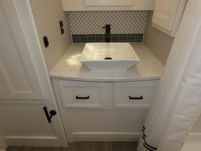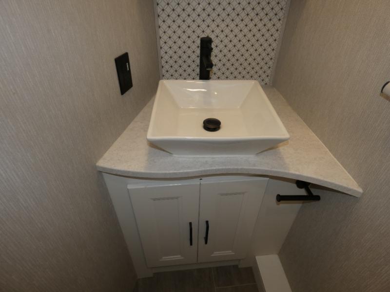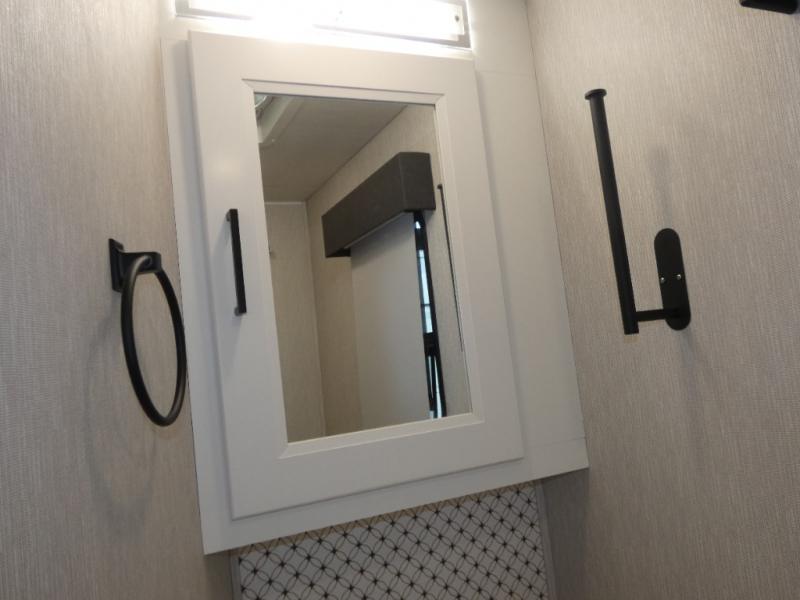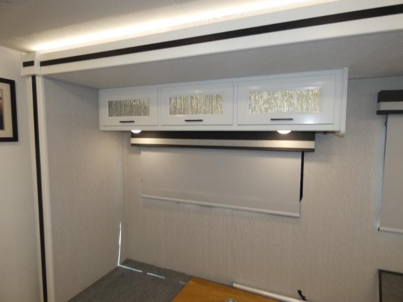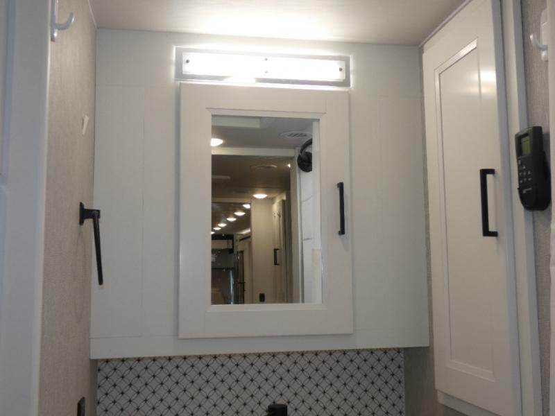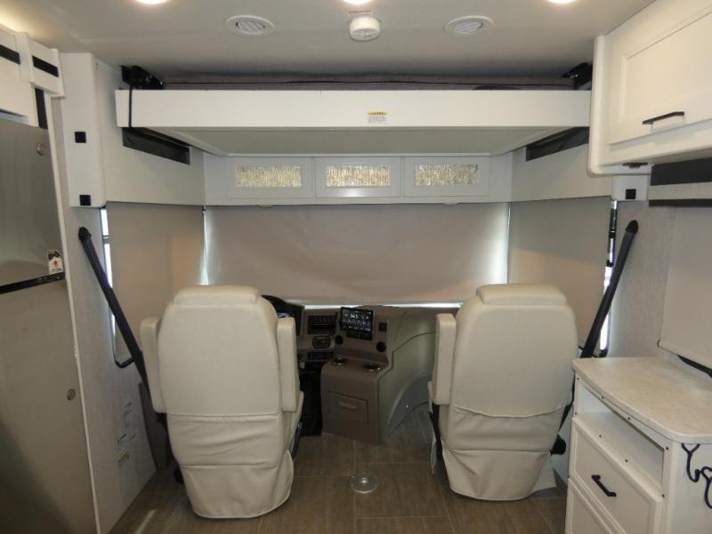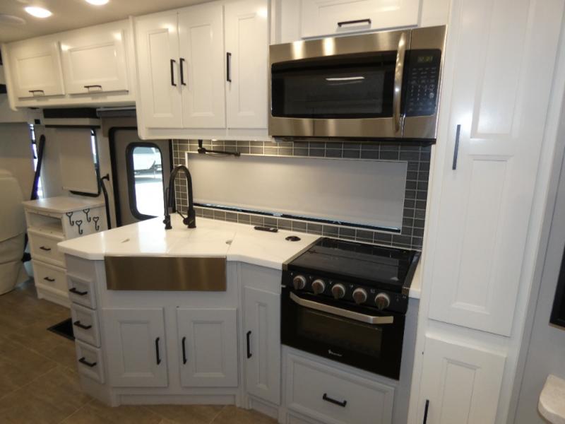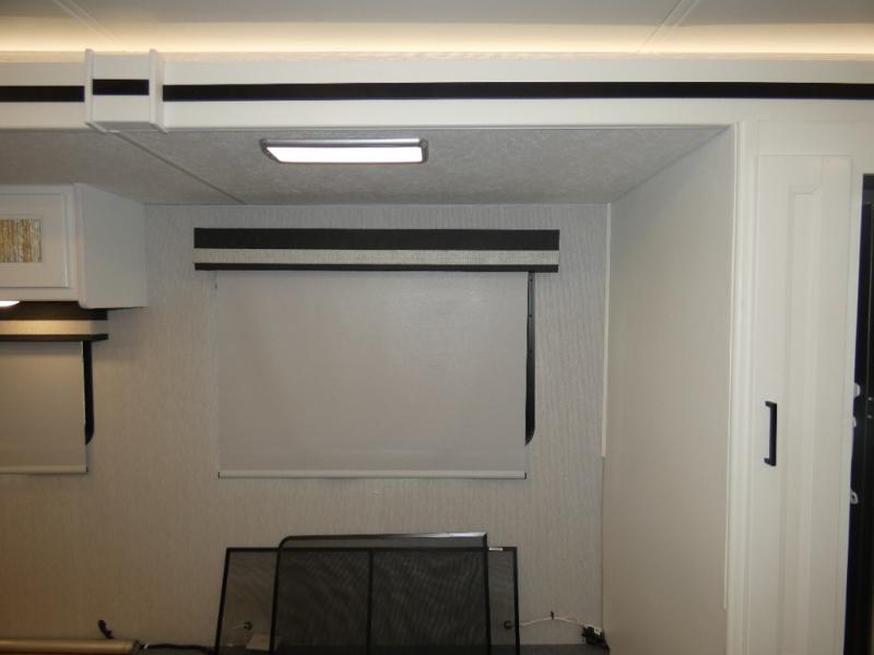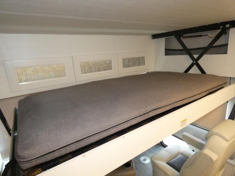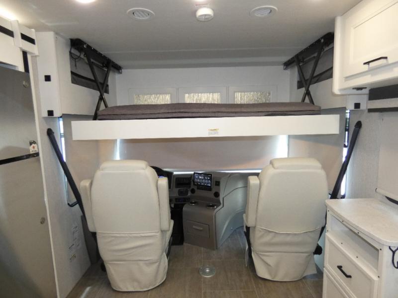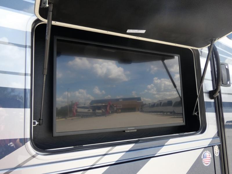 Wow! Check out this motorhome with a full rear bath, a convenient half bath. There is a cockpit table with cupholders for your drinks, and a 40" LCD TV. And the littles ones will love the drop-down overhead bunk. The chef of your group can prepare meals on the three burner range or in the stainless steel over the rang microwave. The master bedroom is comfortable with its king bed slide out and residential style headboard, plus there are USB ports on both sides of the bed and a CPAP station above the bed for convenience.