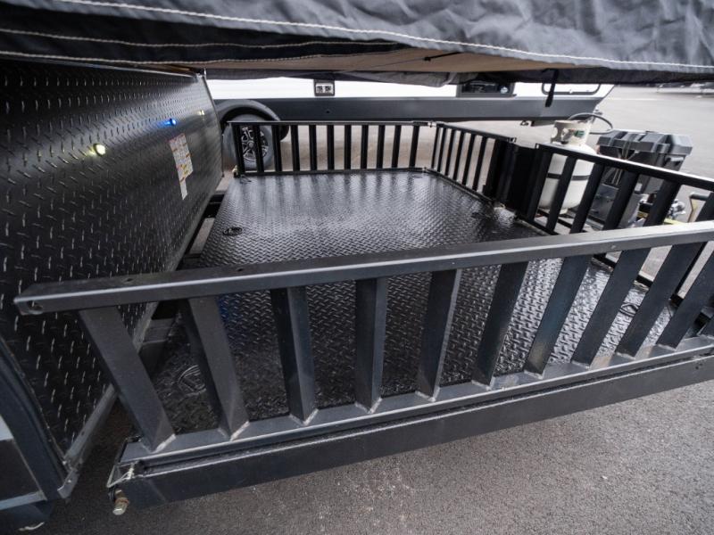 With any V-Trec folding pop-up camper by Coachmen you will find solid construction with the diamond plate front and rear walls, the E-coated tubular steel frame, and the automotive grade metal. There is an outside spray-away with cold water, a one-piece screen door, plus a heavy-duty tongue jack with a wheel for easy towing. A 20,000 BTU furnace, a patio awning, electric brakes, and more is included in the Essentials Package that will make camping more convenient. There are also many available options to choose from to further customize your trailer; a 13,000 BTU A/C, a "Jack It" bike rack, an exterior grill, and much more! Get started today on your next adventure in a V-Trec folding pop-up camper!