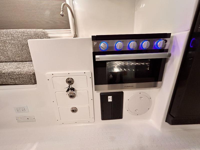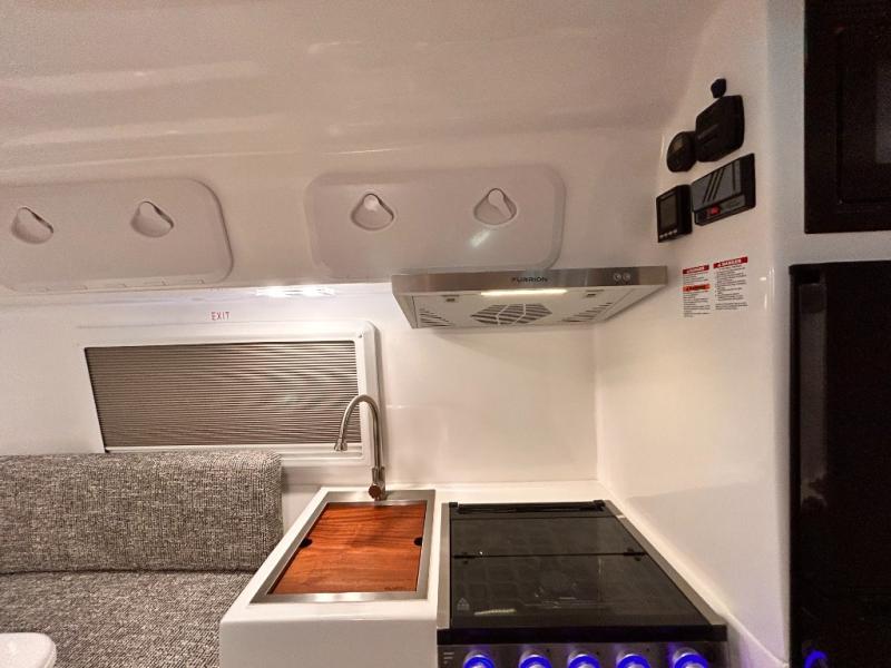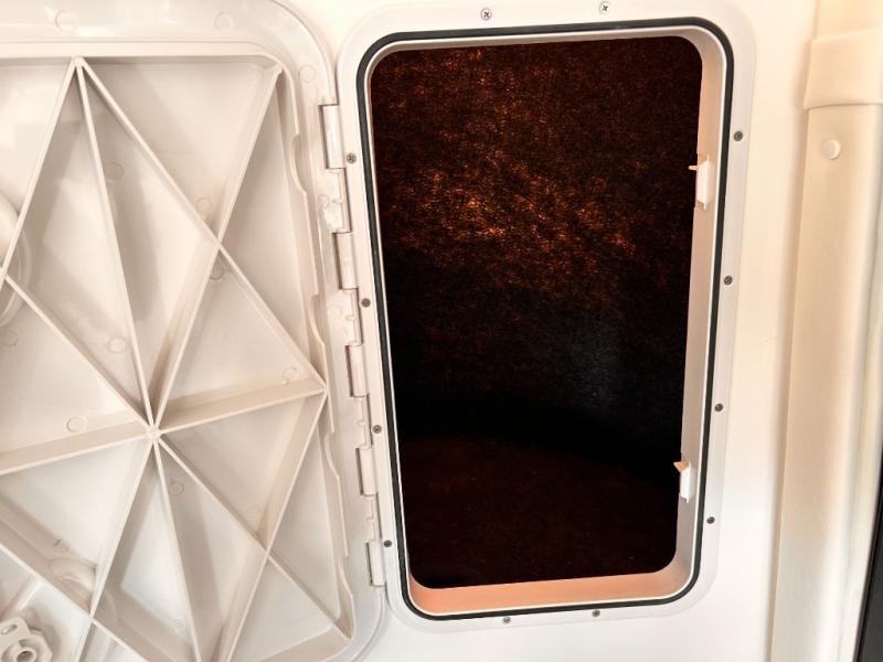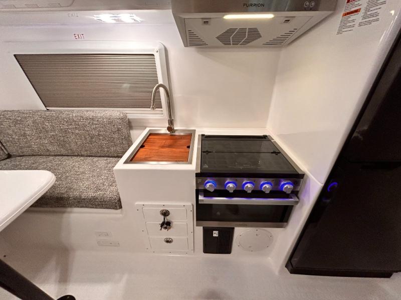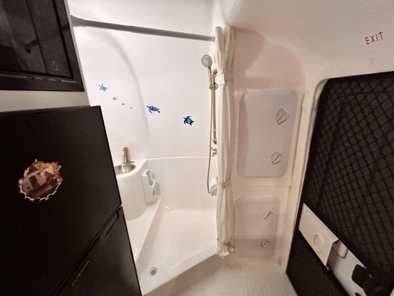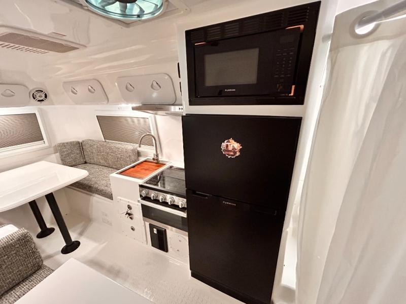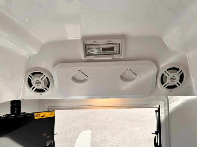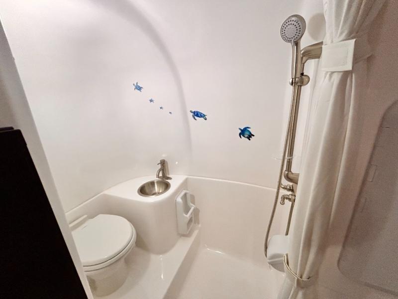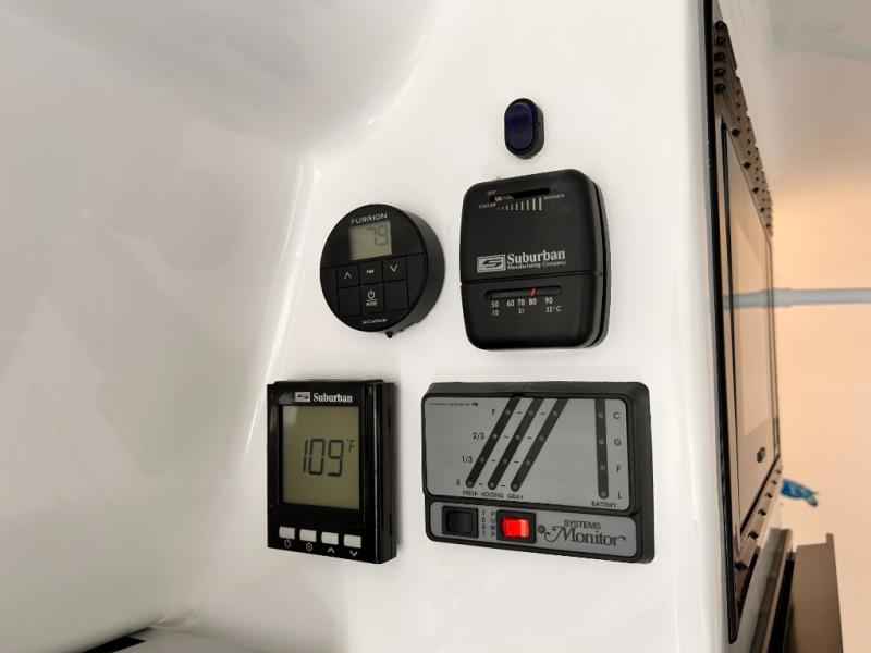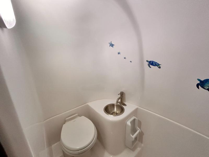 The perfect couples trailer featuring a rear dinette that can easily be converted into a double bed for sleeping. There is a second seat with table that is forward facing off the door side. A wet bath features a shower, toilet, and sink with an exhaust fan to take out the steam, and a enclosed waterproof toilet paper holder. You will enjoy the hand-held multi-setting sprayer when showering. There are also ten ABS marine access storage hatches, plus storage beneath the dinette seat. When relaxing you might want to add the optional 19" Smart LED TV for movie nights!