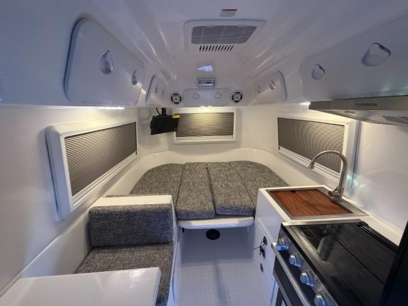 The Cortes Campers is better thanks to their durable construction that is double hulled with a honeycomb core and true 4 season capabilities! There is zero wood construction so you don't have to worry about rot, plus zero carpet or linoleum for easy clean up. Each model includes molded anti-skid fiberglass floors, double paned acrylic windows, and drawers made of "King Starboard". You will love how lightweight and aerodynamic these trailers are, allowing you to get to your destination hassle-free! There are also kitchen and bath amenities, along with versatile sleeping space and innovative storage solutions for your belongings!