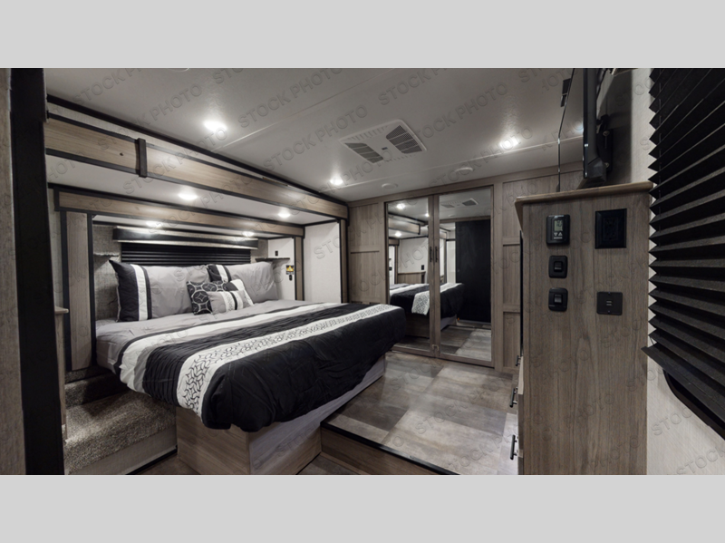 Every element of your home has been considered when creating these CrossRoads RV Cameo fifth wheels! From the oversized pantries, master suites, and full size theater seats with heat and massage to durable construction with the largest I-beam chassis in the industry. They also have the industry's first front windshield, an aerodynamic profile, and a full walk-on roof with an Alpha Ply II roof material. These modern fifth wheels were created with the customer in mind which is why they have convenient features like pass-through heated storage, spacious walk-in closets, an AM/FM/Bluetooth sound bar, a 6-point hydraulic auto level, and a 2" receiving hitch with 4-way plug. The Twice Is Nice package adds even more comforts like dual fireplaces for cozy evenings inside, dual awnings to protect you rain or shine, dual A/C units to keep you cool on those hot summer days, and dual wireless charging stations so your electronics can be at 100%. Come find the right model for you!