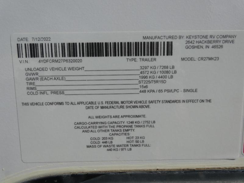 Used 2023 CrossRoads RV Cruiser Aire CR27MK Fifth Wheel