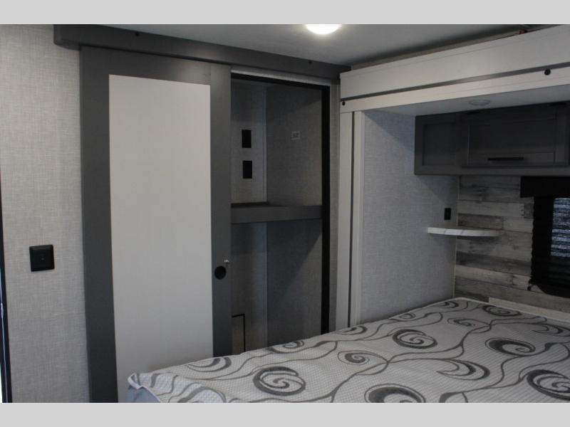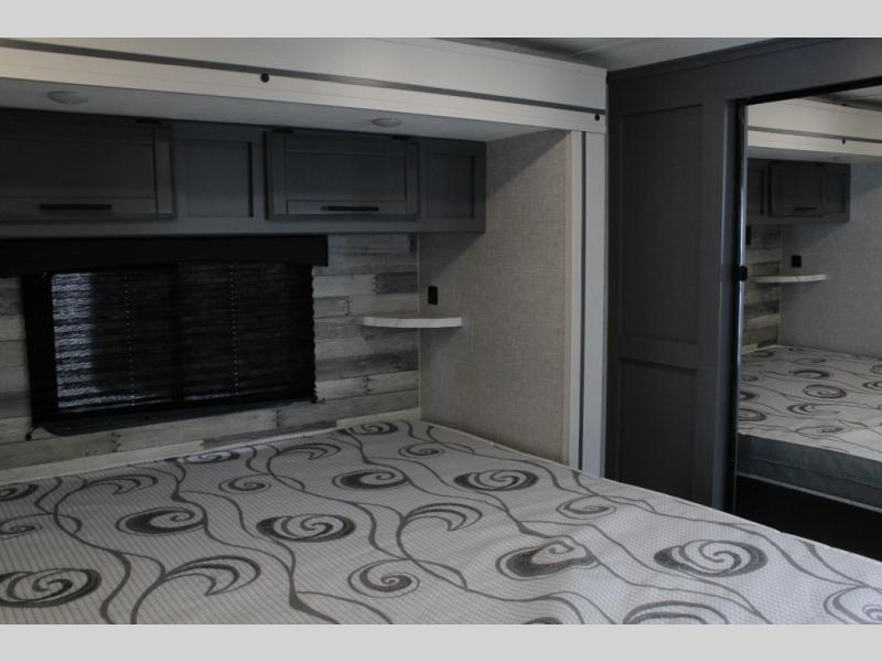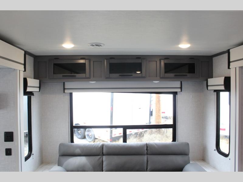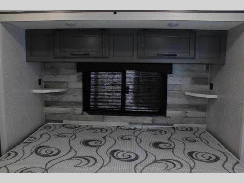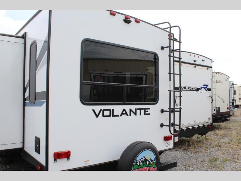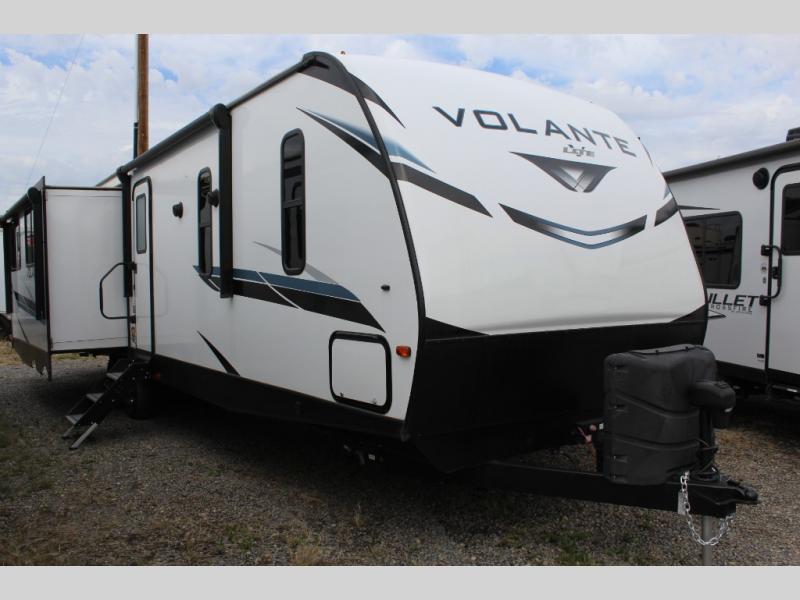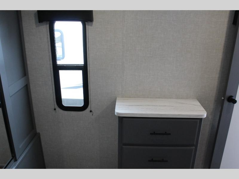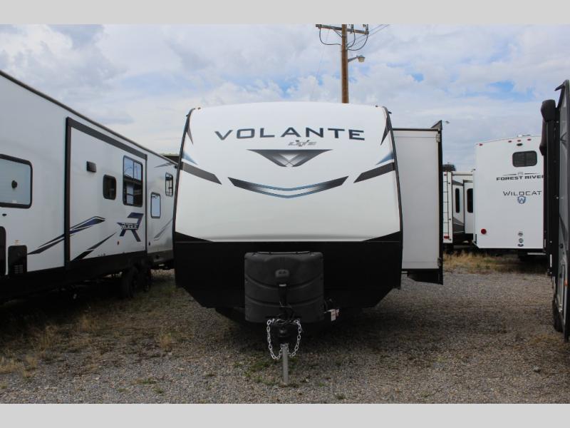 Each Volante fifth wheel or travel trailer by CrossRoads RV includes features and options that will enhance your camping experience. The fiberglass front cap is sure to be eye-catching, and you can plan to camp year around with the fully enclosed and forced air heated underbelly. There is also an outside shower, an electric awning with LED lights, outdoor speakers with LED accents, plus many more exterior conveniences. The interior of each Volante will have you feeling right at home with premium residential furniture, coordinating window treatments in the bedroom, nightstands with outlets in the bedroom, plus USB ports to keep your electronics charged. You will also appreciate a 13,500 BTU A/C, plus solar power prep and WiFi prep if you need to get some work done while you're away from home.