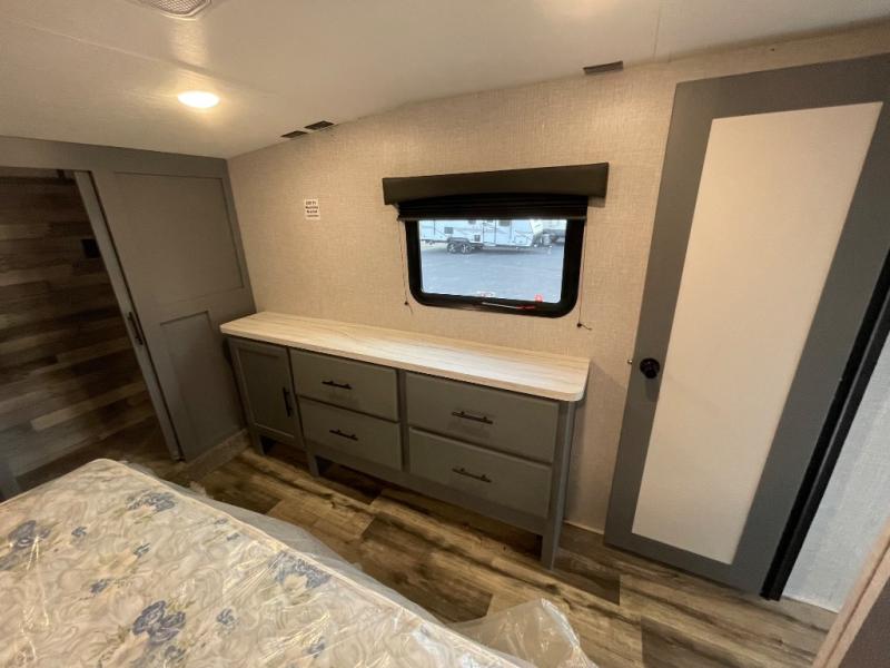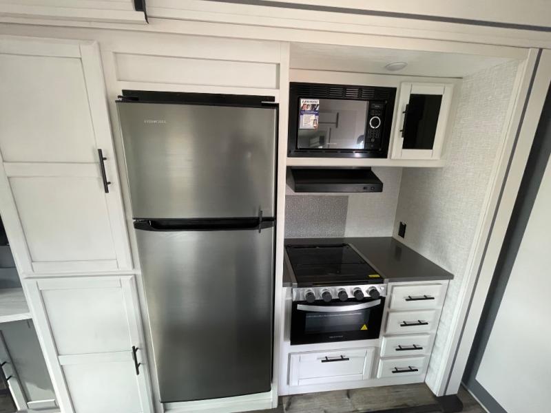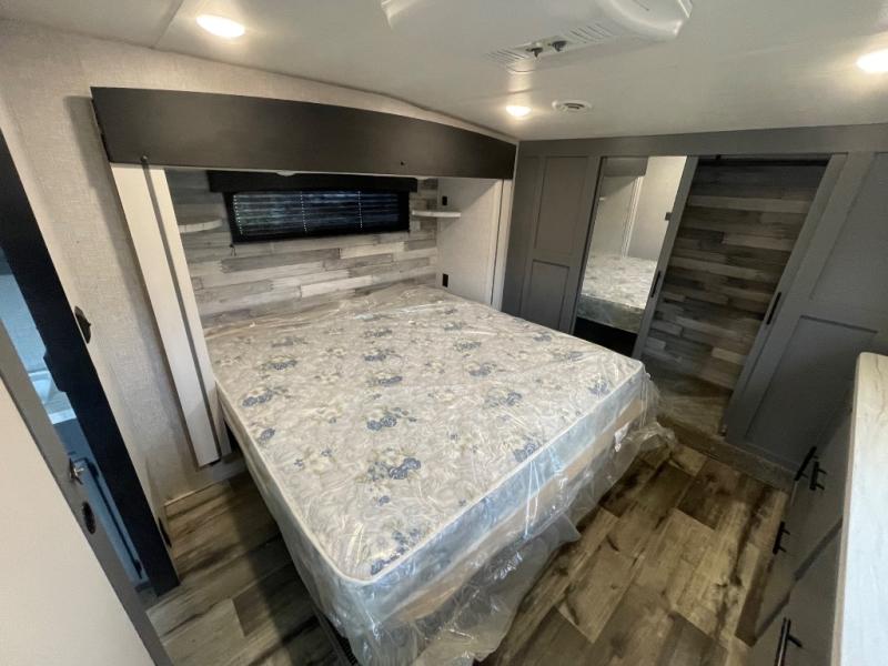 Each Volante fifth wheel or travel trailer by CrossRoads RV includes features and options that will enhance your camping experience. The fiberglass front cap is sure to be eye-catching, and you can plan to camp year around with the fully enclosed and forced air heated underbelly. There is also an outside shower, an electric awning with LED lights, outdoor speakers with LED accents, plus many more exterior conveniences. The interior of each Volante will have you feeling right at home with premium residential furniture, coordinating window treatments in the bedroom, nightstands with outlets in the bedroom, plus USB ports to keep your electronics charged. You will also appreciate a 13,500 BTU A/C, plus solar power prep and WiFi prep if you need to get some work done while you're away from home.