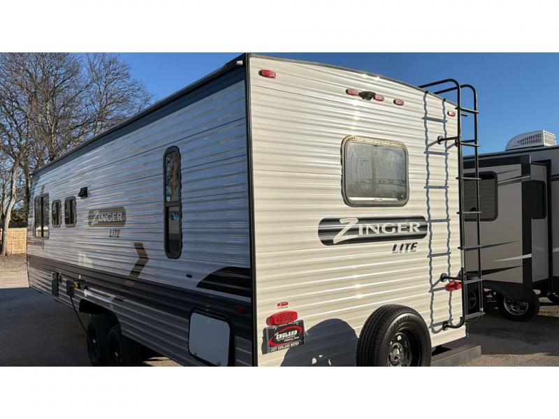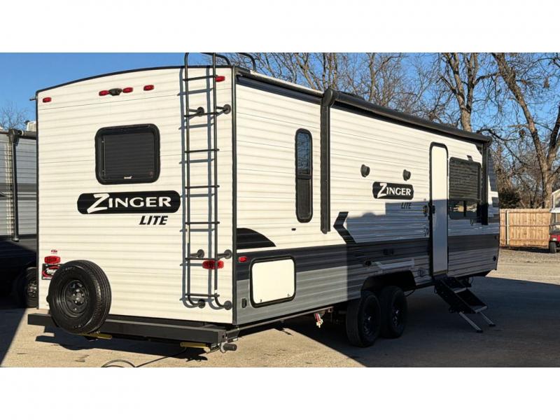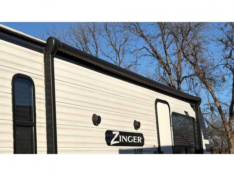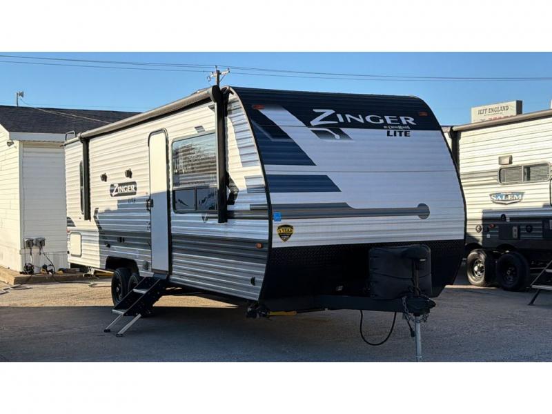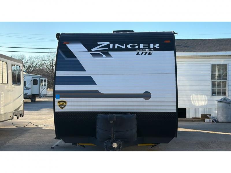 Join the CrossRoads family with a Zinger Lite travel trailer! You'll enjoy an abundance of standard features you would usually find with higher priced travel trailers. Each model features an aerodynamic front end for a more sleek look and better wind resistance when towing. You will appreciate the molded rain gutters with 3" drip spouts, plus Secure Stance entry steps and Keyed-A-Like doors. Having an AM/FM stereo with a Bluetooth soundbar will allow you to listen to your favorite tunes as you camp, and there are outdoor speakers with LED accents if you plan to take the party outdoors. The Zinger Lite also features a 81" interior ceiling height, generous storage space, plus popular options that can be added to further customize your RV. Choose yours today!
