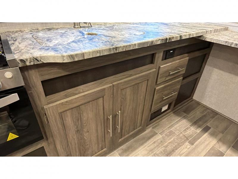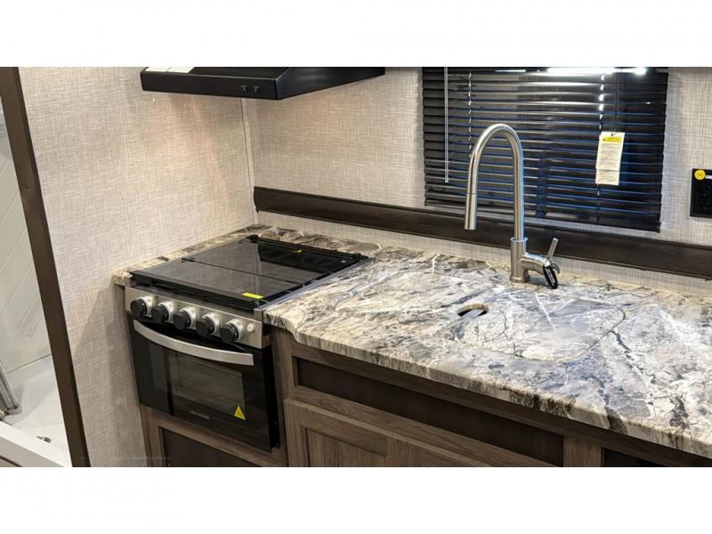 You and your spouse will not want to leave the campsite with this Zinger Lite travel trailer! There is a comfortable 60" jackknife sofa with an end table across from the front entertainment center which features an HDTV for you to watch your favorite movies on at night. The outstanding kitchen not only has two bar stools at the countertop, but it also has a 10-cu. ft. 12V refrigerator, an oven with an LED glass top, and a stainless steel sink with a stainless steel high-rise faucet to make clean-up a breeze. You can head right into the rear private bedroom from the walk-through bath and take a quick nap on the RV queen bed with shirt closets on either side to keep your hang-up clothes neat and tidy!