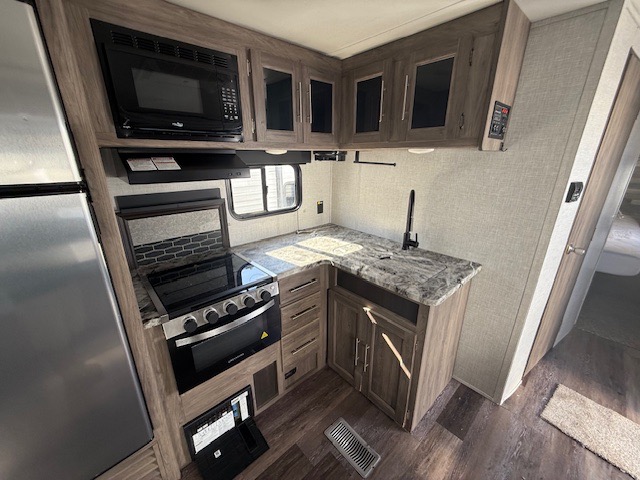Lead your family to a great vacation getaway in any one of these CrossRoads RV Zinger travel trailers! They come with a fully enclosed underbelly with forced heat (varies by model) so that you can head to your favorite spot no matter what mother nature throws your way. The outside hot/cold shower will help keep mud from being tracked inside, and the Keyed-A-Like lock system will give you peace of mind at night or while you're away from the trailer. With an aerodynamic front end, you will get better gas mileage, and crank up the tunes with the outside speakers with LED accents. Start making memories in one of these models today!
