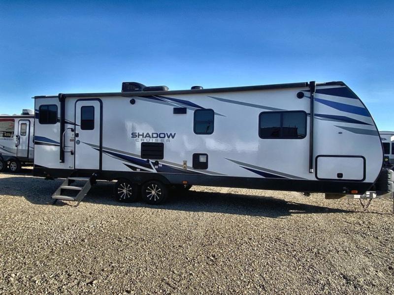 Each one of these Cruiser Shadow Cruiser travel trailers come with convenient features for you to make memories that will last a lifetime! The five sided aluminum framing holds together the Azdel composite laminated sidewalls which will keep your unit from rotting away, plus the surround seal slide system has a rain gutter to aid in keeping water out. Their strong foundation is built with a powder coated structural I-beam frames and three times the amount of required full-height cross members to provide a more solid floor foundation with more attachment points. Travel any time of year with the Extended Season package that includes radiant foil and ducted heating. There is also dual ducted 13,500 BTU A/C to keep you cool and a high BTU ducted furnace to keep you warm. The patent pending full belly pass-through storage area is LED lit so you can see all of your gear and slam latch baggage doors with magnetic latches to keep it in place while you access your items. Come find the perfect model for you today!
