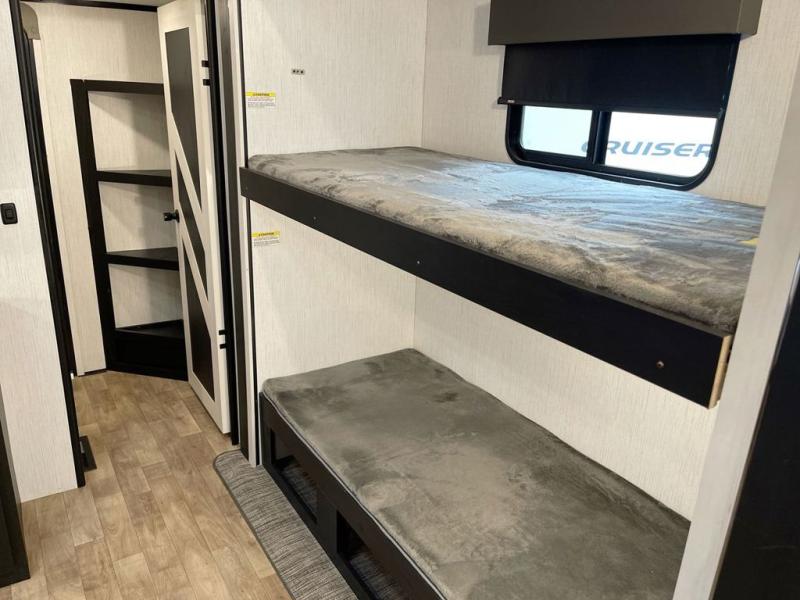 If you like having a one-of-a-kind product, then you'll love the Cruiser South Fork fifth wheel because it is exclusively sold at Fun Town RV! These luxurious units have a full profile, straight roofline, 6' 5"-tall slide outs, and Azdel laminated sidewalls. Some of the top exterior features that will grab your attention are the anti-chucking Rotoflex 2" pin box and the upgraded MORryde solid step with quick-adjust system at every door. The Level Up electric system comes standard as does the 50W solar panel with inverter prep. Each model has also been prepped for Wi-Fi, and you'll find wireless charging ports throughout your unit.