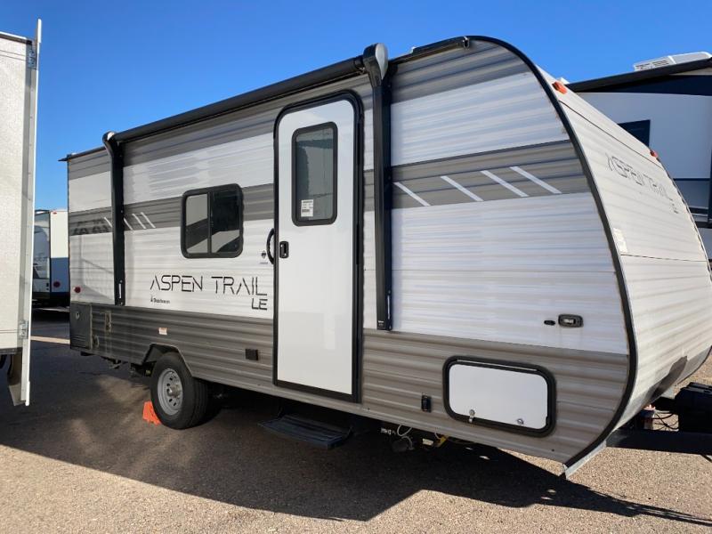 With any Aspen Trail LE travel trailer by Dutchmen, you will have a durable roof structure with a TPO roof, 3/8" decking, fiberglass insulation, and an insulated structure with a metal exterior panel, a wood frame with R7 thermal insulation and a lauan interior panel, plus superior A/C cooling. The interior offers a Home Series interior design collection for an at home feel, full extension drawer guides throughout, mini blinds throughout for privacy, and LED interior lighting to see clearly day or night. Make your selection today and enjoy a smaller, lighter-weight RV!