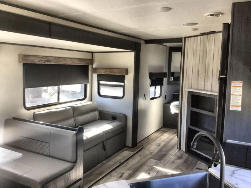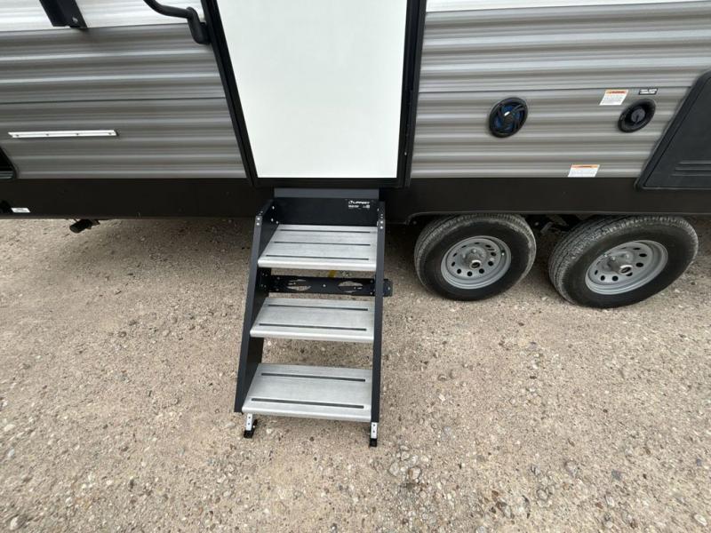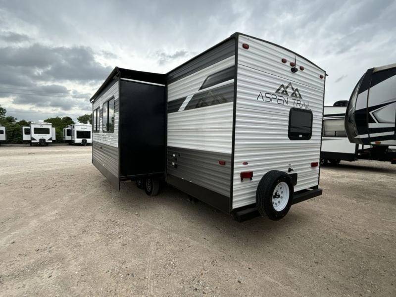 You will find more standard features and more value in each one of these Dutchmen RV Aspen Trail travel trailers! There is a smooth metal front end, diamond plate rock guard, a backup camera, plus many more exterior features. Experience all of the power with power stabilizers, a power awning, and a power tongue jack for easy setting up and breaking down. The fully enclosed underbelly provides an extra layer of protection for your unit's vitals so you can camp further into the year. With aluminum steps at the main entry, you will have a solid platform of stability as you enter and exit, plus they are easy to expand or store away. And the hardwood cabinetry throughout, roller shades, and seamless countertops will have you feeling right at home!