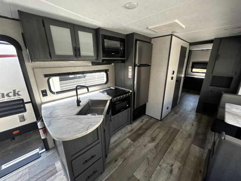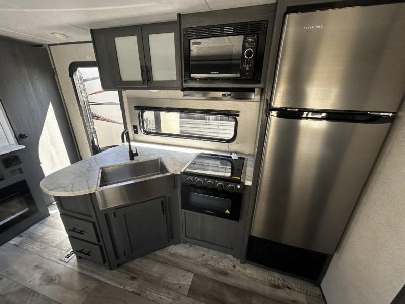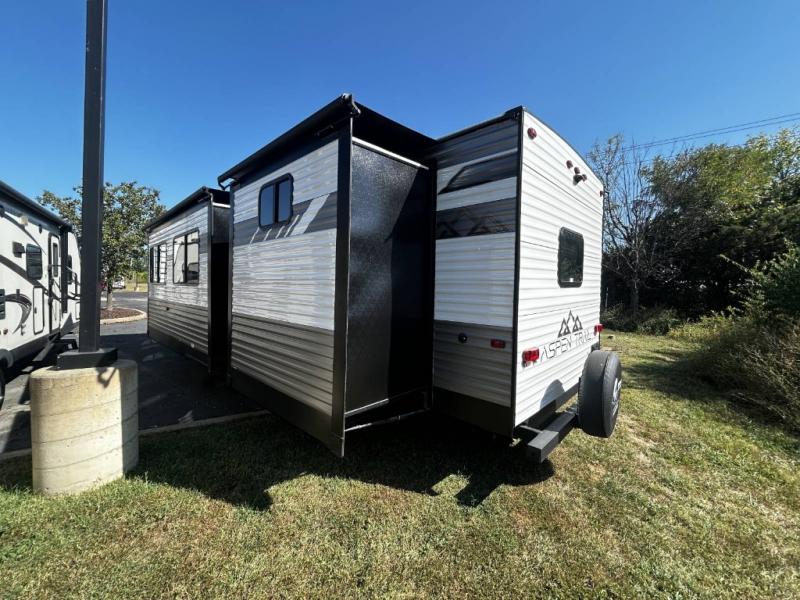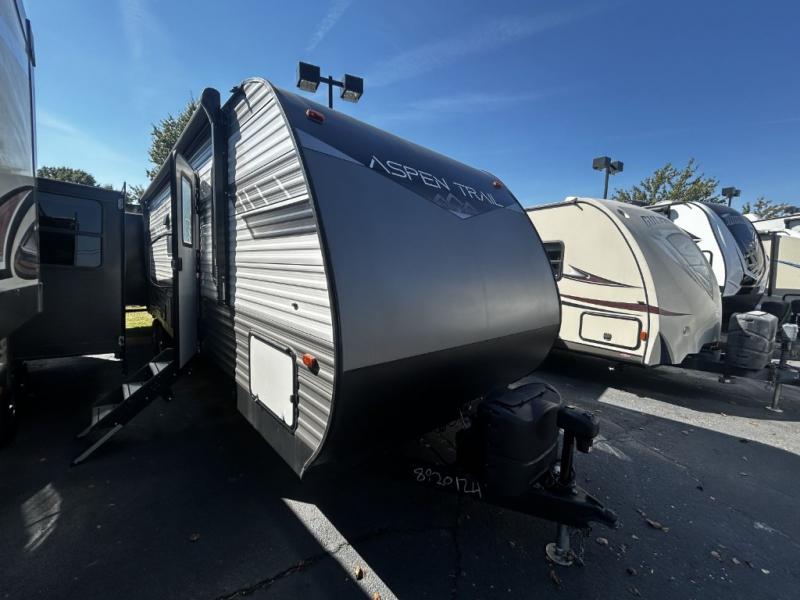 You will find more standard features and more value in each one of these Dutchmen RV Aspen Trail travel trailers! There is a smooth metal front end, diamond plate rock guard, a backup camera, plus many more exterior features. Experience all of the power with power stabilizers, a power awning, and a power tongue jack for easy setting up and breaking down. The fully enclosed underbelly provides an extra layer of protection for your unit's vitals so you can camp further into the year. With aluminum steps at the main entry, you will have a solid platform of stability as you enter and exit, plus they are easy to expand or store away. And the hardwood cabinetry throughout, roller shades, and seamless countertops will have you feeling right at home!
