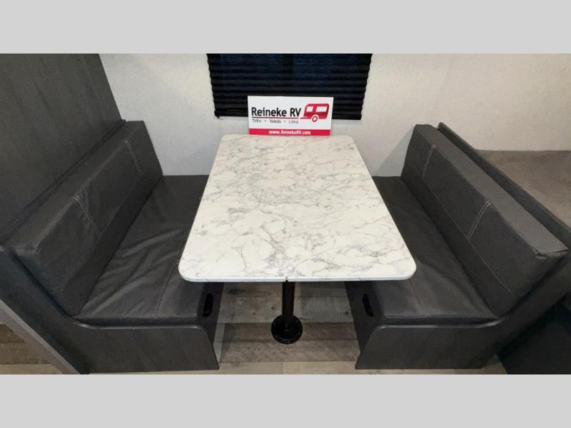 This compact trailer gives you all the conveniences you need while camping, plus comfort! The front queen bed, the bunk beds and the booth dinette offer sleeping space for five, the toilet and shower room offer privacy and a great place to change clothes, and the galley kitchen offers a two burner range top to make meals, a 3.3 cu. ft. refrigerator for cold items, and galley sink with high rise faucet. You can also enjoy the power awning when wanting some fresh air and protection from the sun.
