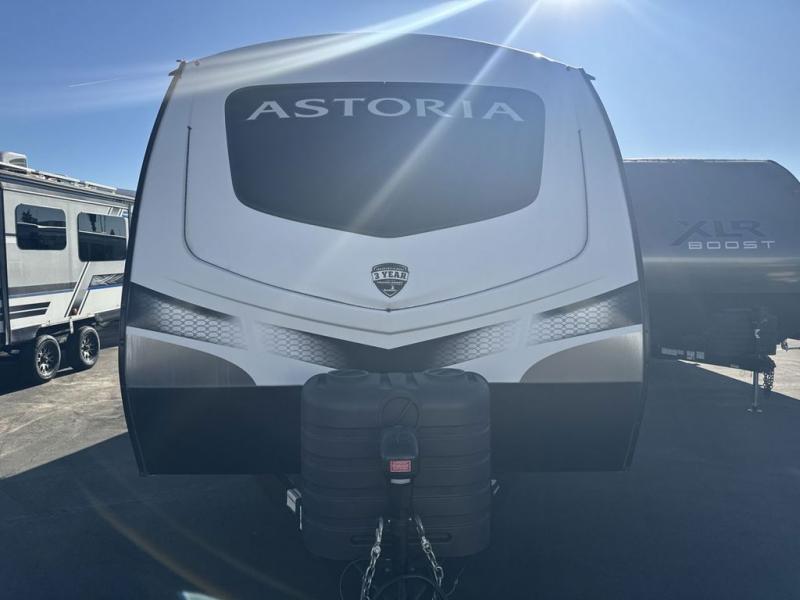 Each one of these Dutchmen RV Astoria fifth wheels and travel trailers offer highly visible, value-driven standard features and a sturdy construction with a fiberglass exterior! Dark-tinted safety glass windows offer privacy and a sleek design. You can store your outdoor gear in the pass-through storage areas and the slam latch baggage doors on the fifth wheels offer even more security while you travel. Their modern interior décor includes acrylic backsplash and stainless steel appliances which will be easy to clean. HyperDeck flooring will also be easy to clean, as well as hold up through each and every adventure. Don't waste anymore time, come find your perfect model today!