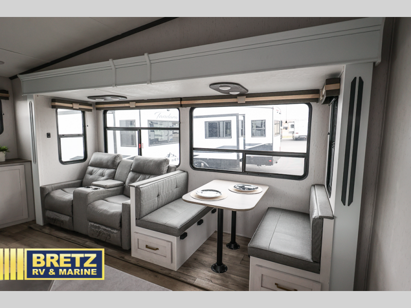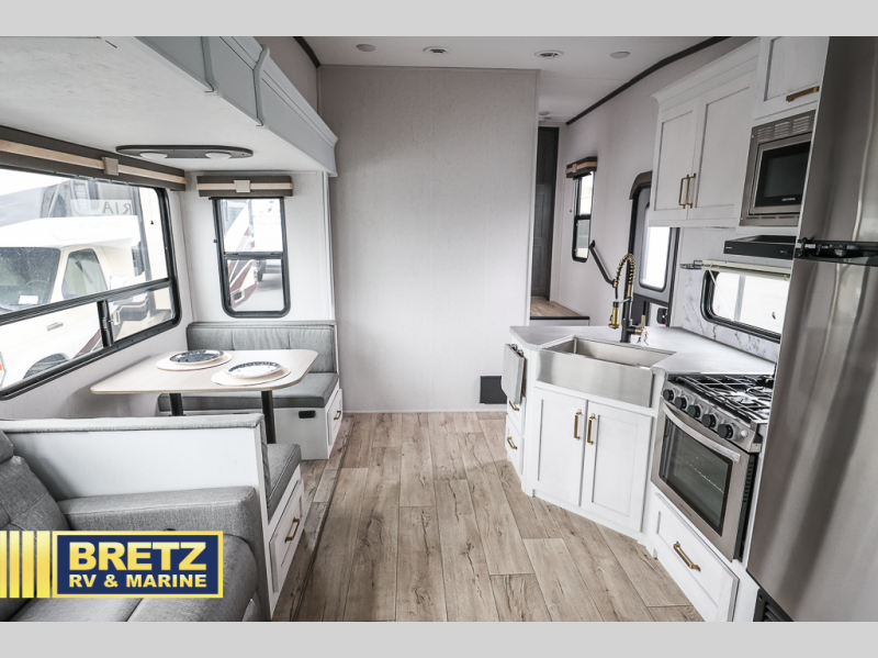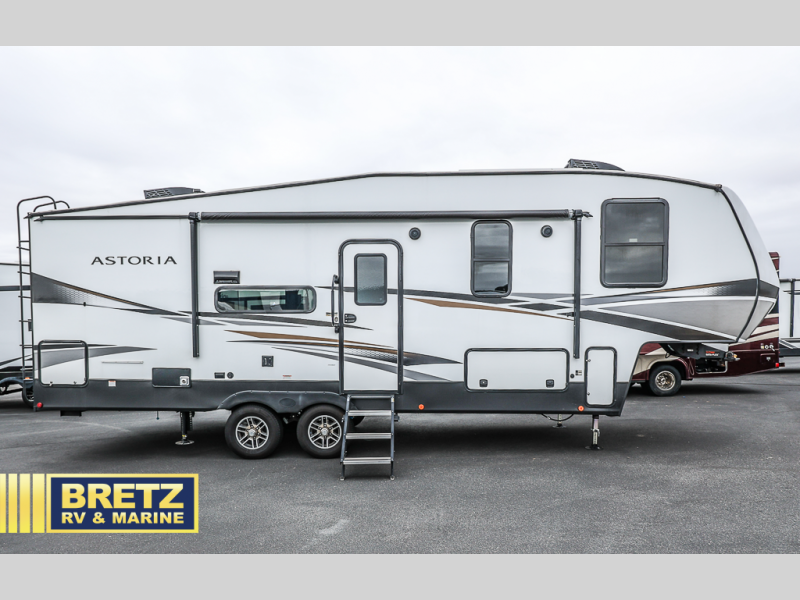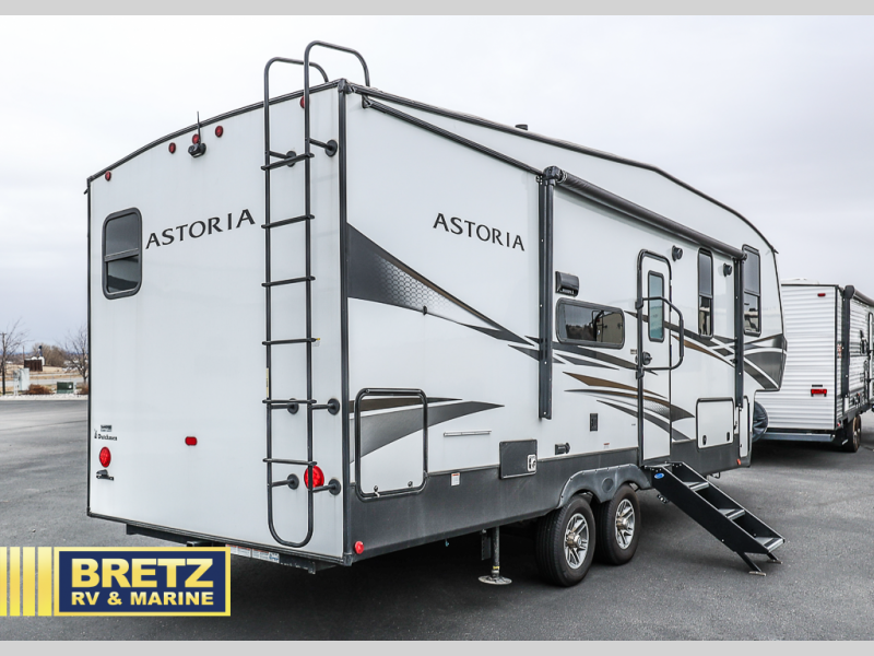 Each one of these Dutchmen RV Astoria fifth wheels and travel trailers offer highly visible, value-driven standard features and a sturdy construction with a fiberglass exterior! Dark-tinted safety glass windows offer privacy and a sleek design. You can store your outdoor gear in the pass-through storage areas and the slam latch baggage doors on the fifth wheels offer even more security while you travel. Their modern interior décor includes acrylic backsplash and stainless steel appliances which will be easy to clean. HyperDeck flooring will also be easy to clean, as well as hold up through each and every adventure. Don't waste anymore time, come find your perfect model today!