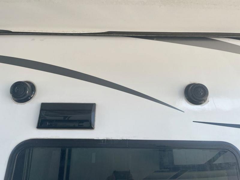 Journeys have never been more fun or packed with amenities than with the Dutchmen Atlas fifth wheel or travel trailer! These units come equipped with outside speakers, preparations for a backup camera, an oversized lighted pass-through storage, and a fully enclosed and heated underbelly. The friction-hinge entry door won't fly away when you open it, and the exterior spray port lets you hook up a hose to provide water when you need it. The fifth wheels have an electric four-point leveling system, and the travel trailers have electric stabilizer jacks. A painted fiberglass front cap protects the front portion of your Atlas, and the electric adjustable awning with LED lights is going to allow you to party outside with shade when you want it.