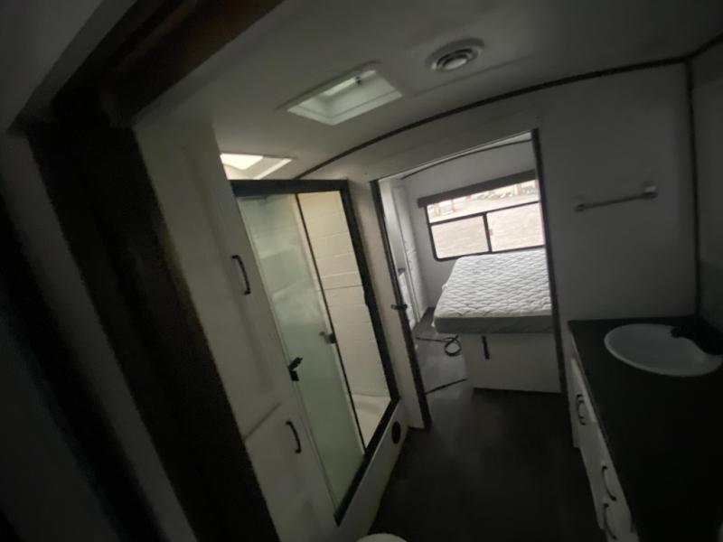 At approximately 33 ft in length with a dry weight around 7,300 lbs and a manageable hitch weight, this trailer is towable by many half-ton and three-quarter-ton trucks.