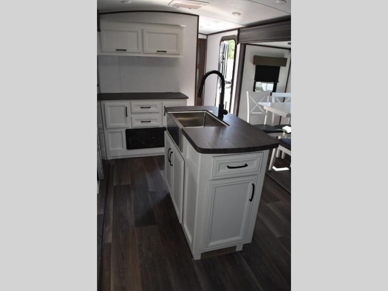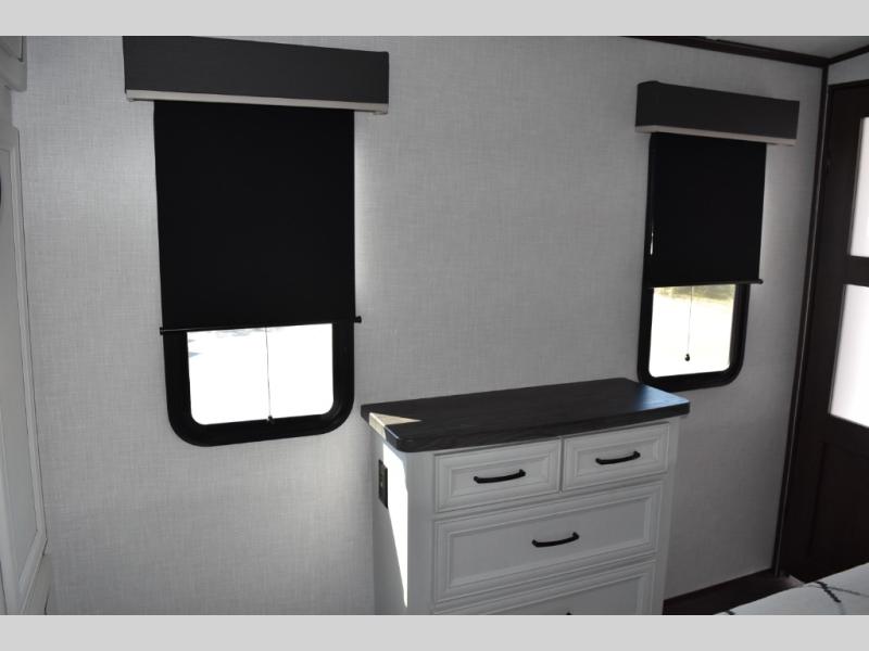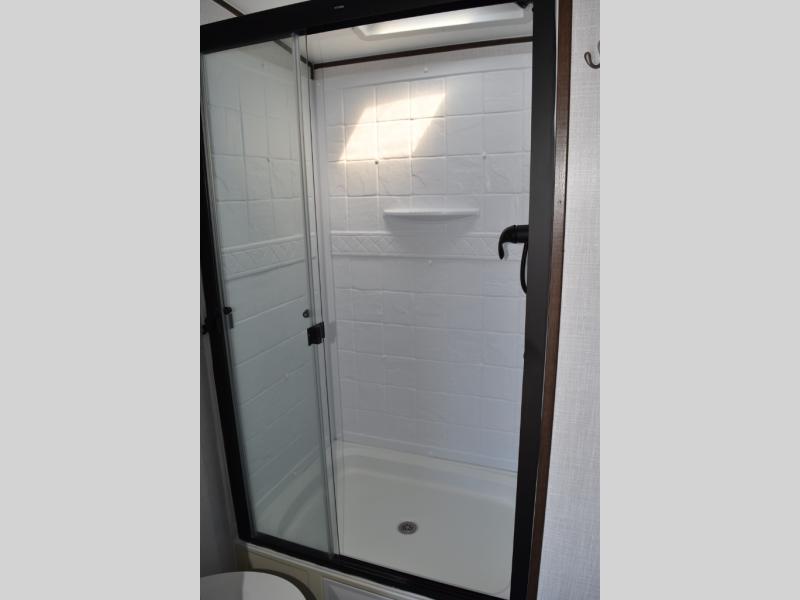 Journeys have never been more fun or packed with amenities than with the Dutchmen Atlas fifth wheel or travel trailer! These units come equipped with outside speakers, preparations for a backup camera, an oversized lighted pass-through storage, and a fully enclosed and heated underbelly. The friction-hinge entry door won't fly away when you open it, and the exterior spray port lets you hook up a hose to provide water when you need it. The fifth wheels have an electric four-point leveling system, and the travel trailers have electric stabilizer jacks. A painted fiberglass front cap protects the front portion of your Atlas, and the electric adjustable awning with LED lights is going to allow you to party outside with shade when you want it.