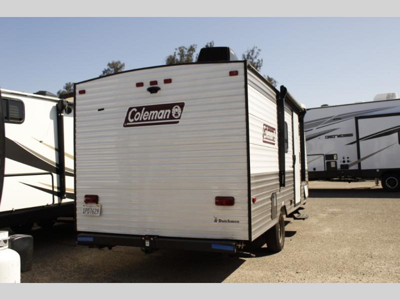 With this Coleman trailer, you will experience Dutchmen quality throughout, plus enjoy a lightweight travel trailer while towing to the campground or RV park. Some of the inside features include glass cabinet doors, a high rise faucet, and trash can storage. The 28" entrance door offers an entry handle to easily make your way up the solid entry step, and other exterior features include radial tires, silver spoke rims, Easy Lube axles and storage. Take this Coleman home today!