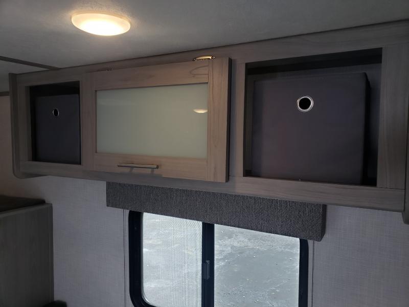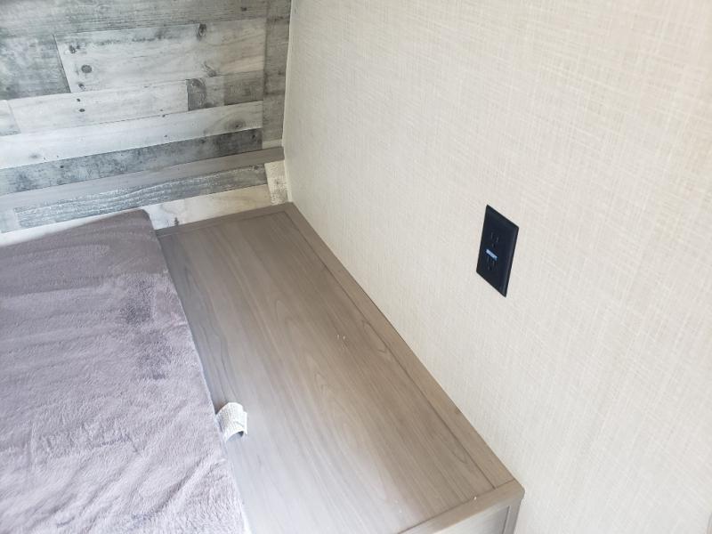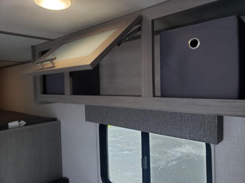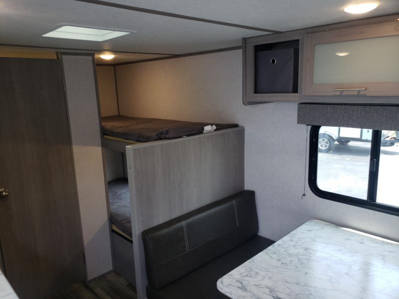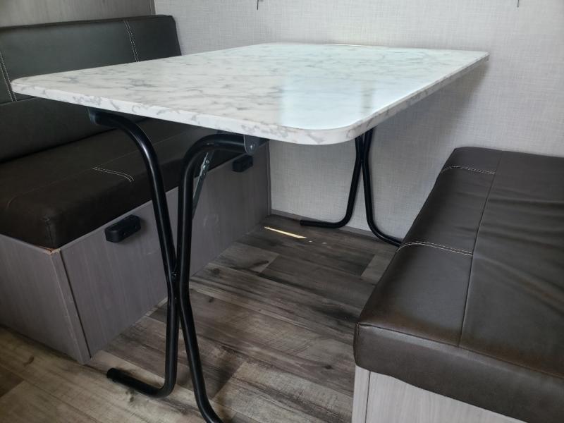 Smart Sleeping Spaces – A cozy queen bed, bunk beds, and convertible booth dinette sleep up to 5 campers.