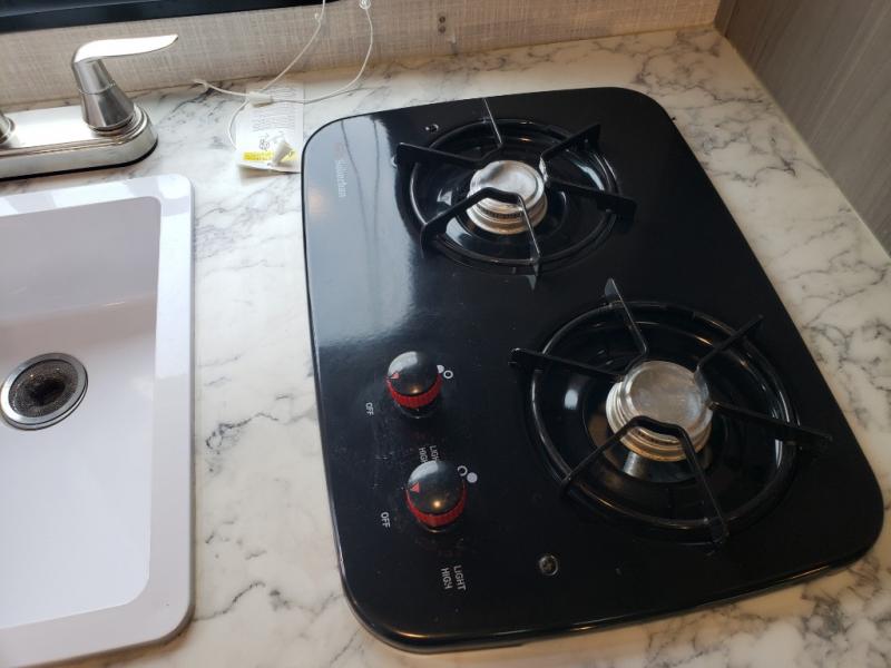 Compact Yet Functional Kitchen – Cook with ease using the two-burner cooktop and microwave—perfect for quick meals.