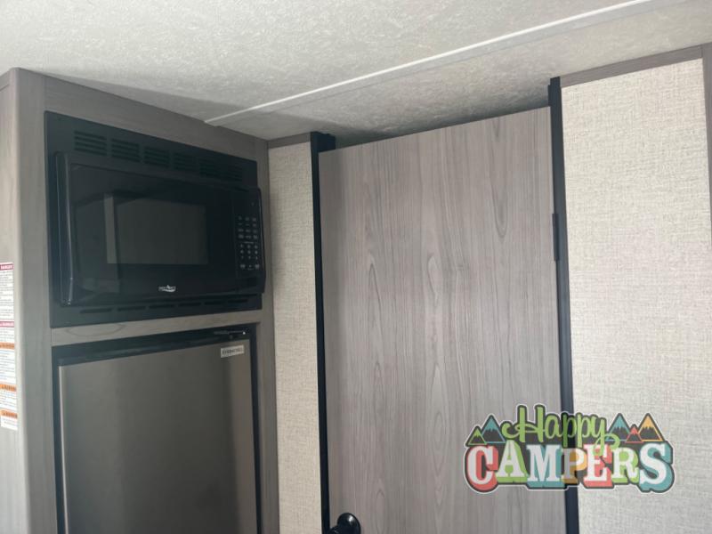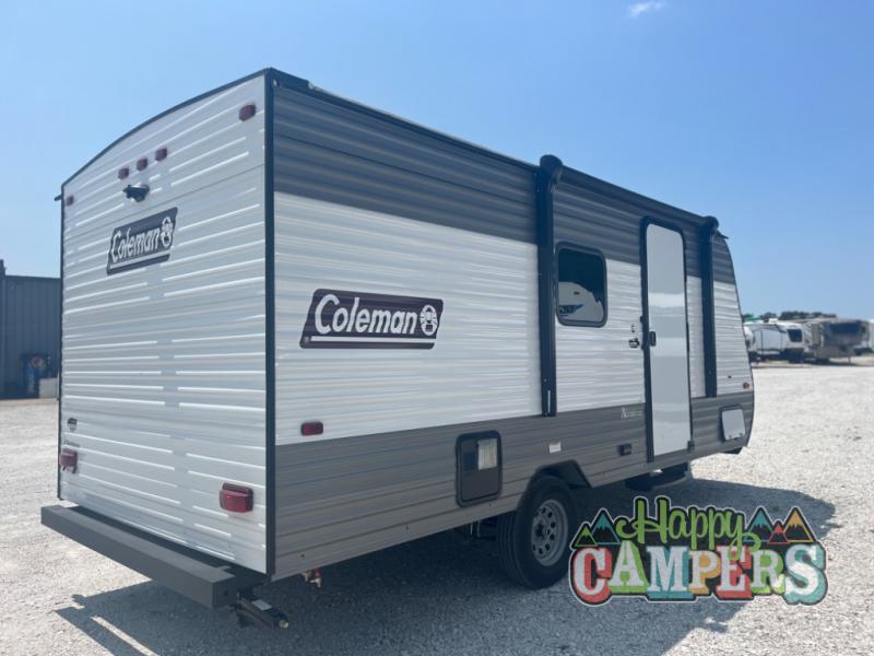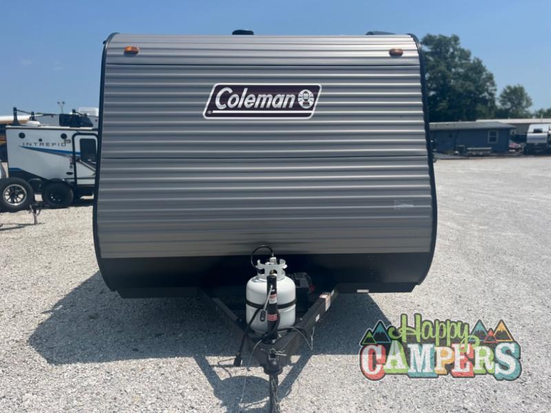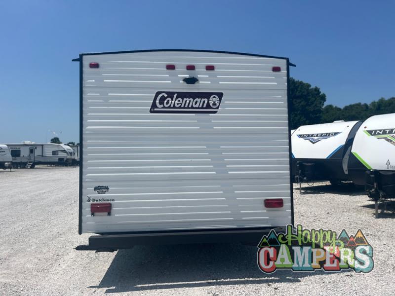 With this Coleman trailer, you will experience Dutchmen quality throughout, plus enjoy a lightweight travel trailer while towing to the campground or RV park. Some of the inside features include glass cabinet doors, a high rise faucet, and trash can storage. The 28" entrance door offers an entry handle to easily make your way up the solid entry step, and other exterior features include radial tires, silver spoke rims, Easy Lube axles and storage. Take this Coleman home today!