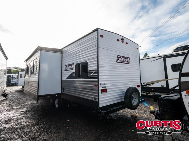 With any Coleman Lantern Series travel trailer and toy hauler travel trailer, the interior will impress with upgraded residential grade linoleum and Eyewear luxury furniture for style and durability, the undermounted large kitchen sink with stainless steel high-rise kitchen faucet, and seamless countertops, plus the hard valances in the living room and master bedroom and the AM/FM/CD/AUX/Bluetooth stereo. The Dutchmen construction advantage is included and provides a durable roof structure with a TPO roof, 3/8" decking, fiberglass insulation, and a lauan interior panel, plus an insulated structure with a metal exterior panel, a wood frame with R7 thermal insulation and an lauan interior panel. Also included is the Blade air flow system which helps reduce air turbulence and noise with duct elbows and wyes that feature enlarged inlets. Choose a Coleman Lantern Series because you appreciate quality, value and design when you camp!