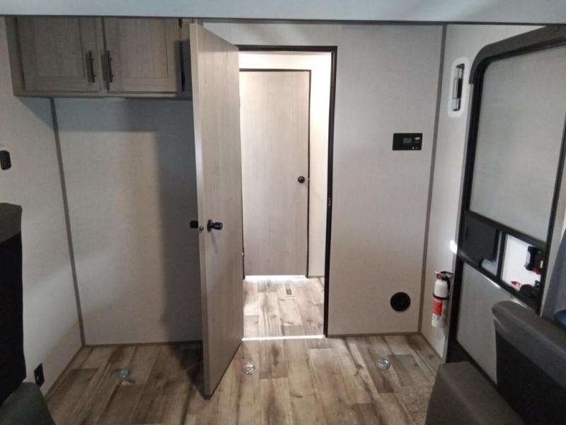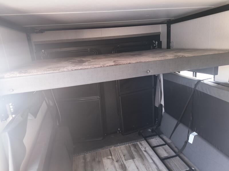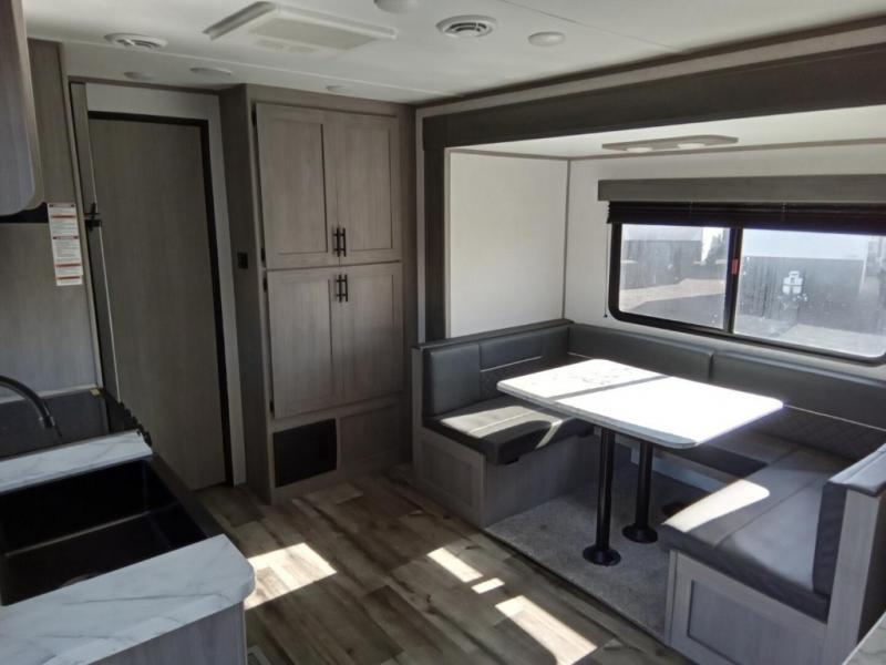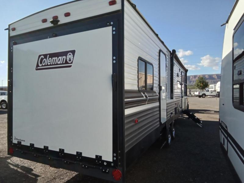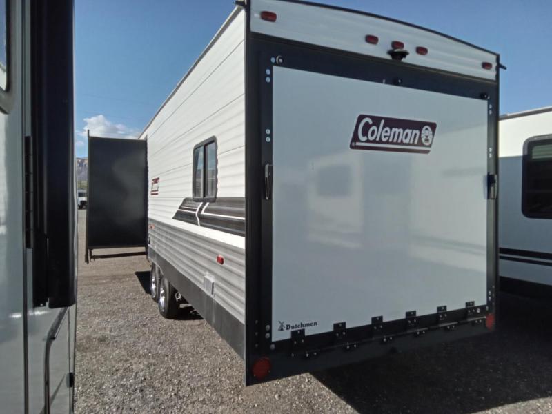 With any Coleman Lantern Series travel trailer and toy hauler travel trailer, the interior will impress with upgraded residential grade linoleum and Eyewear luxury furniture for style and durability, the undermounted large kitchen sink with stainless steel high-rise kitchen faucet, and seamless countertops, plus the hard valances in the living room and master bedroom and the AM/FM/CD/AUX/Bluetooth stereo. The Dutchmen construction advantage is included and provides a durable roof structure with a TPO roof, 3/8" decking, fiberglass insulation, and a lauan interior panel, plus an insulated structure with a metal exterior panel, a wood frame with R7 thermal insulation and an lauan interior panel. Also included is the Blade air flow system which helps reduce air turbulence and noise with duct elbows and wyes that feature enlarged inlets. Choose a Coleman Lantern Series because you appreciate quality, value and design when you camp!