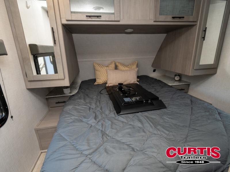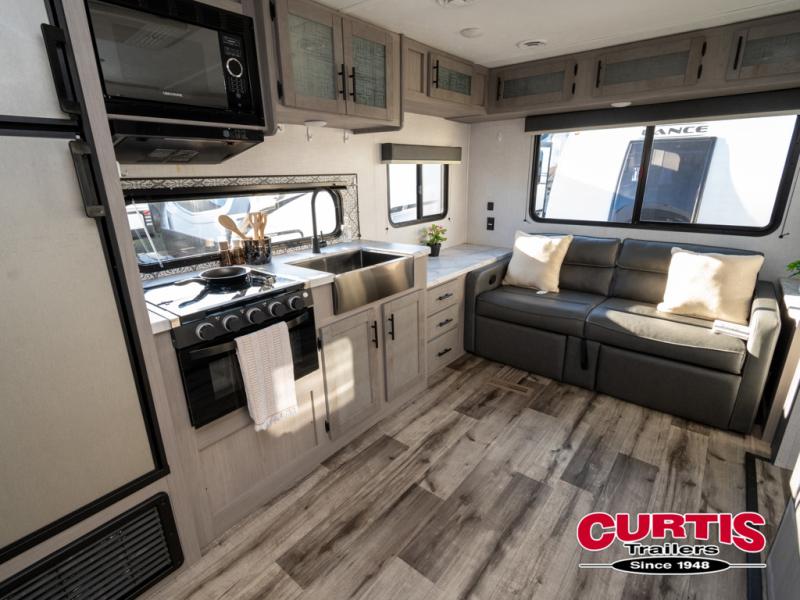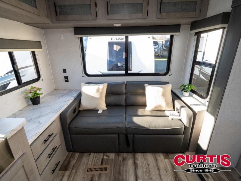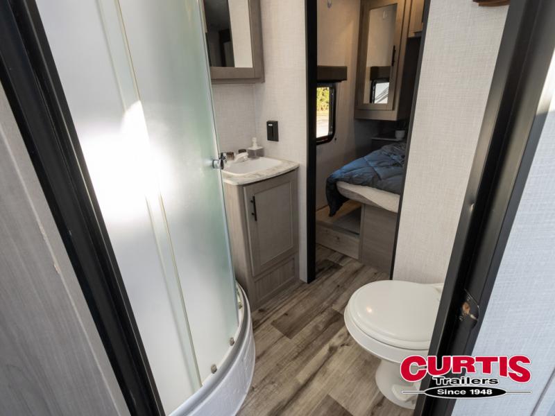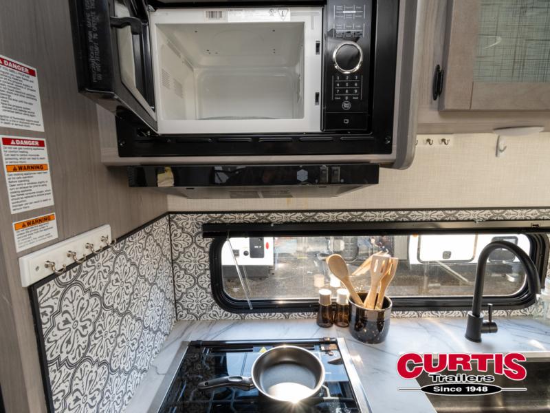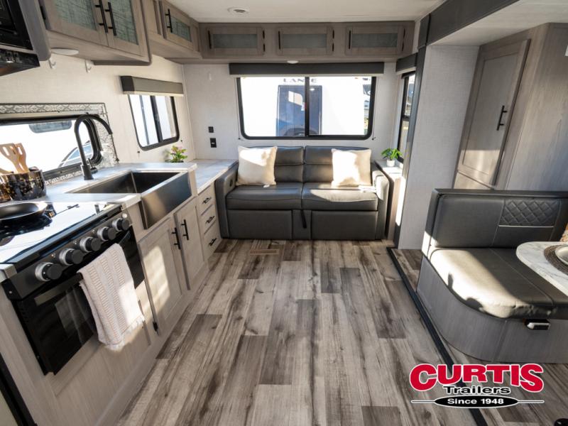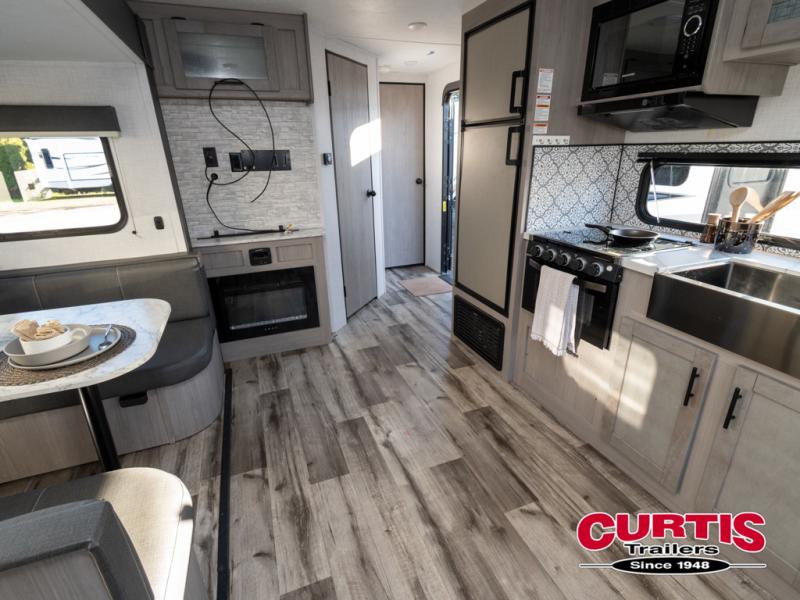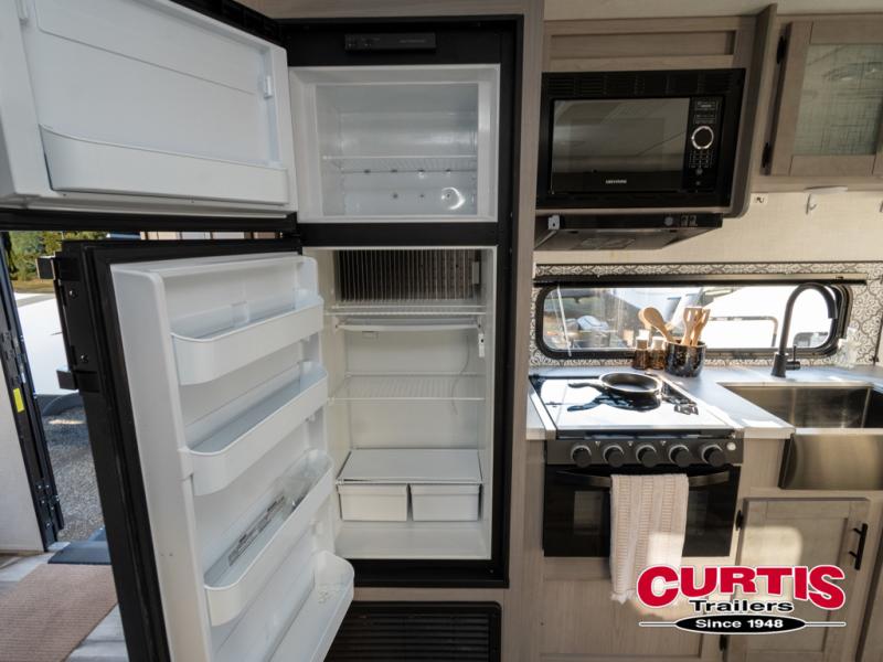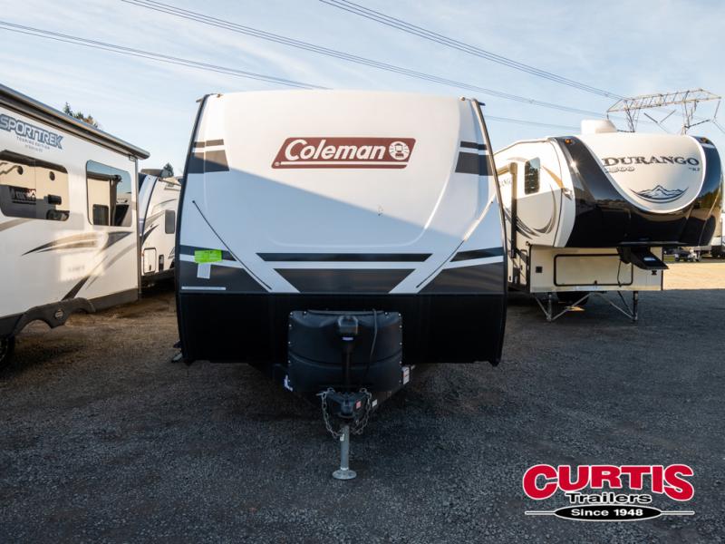 The Dutchmen Coleman Light travel trailer features an upgraded kitchen package with residential appliances, high-rise faucets, and a stainless steel farm-style sink. The fully enclosed underbelly allows all of your trailer's vital functions to be kept out of the freezing cold, and you'll have great stability as you enter your trailer by using the solid entry steps. Each model includes power stabilizer jacks, a power tongue jack, dual 20-LB propane tanks, a residential queen bed, and preparations for Wi-Fi 4G LTE. There is an aerodynamic front fiberglass cap, exterior speakers, solar charging connection, and aluminum wheels.