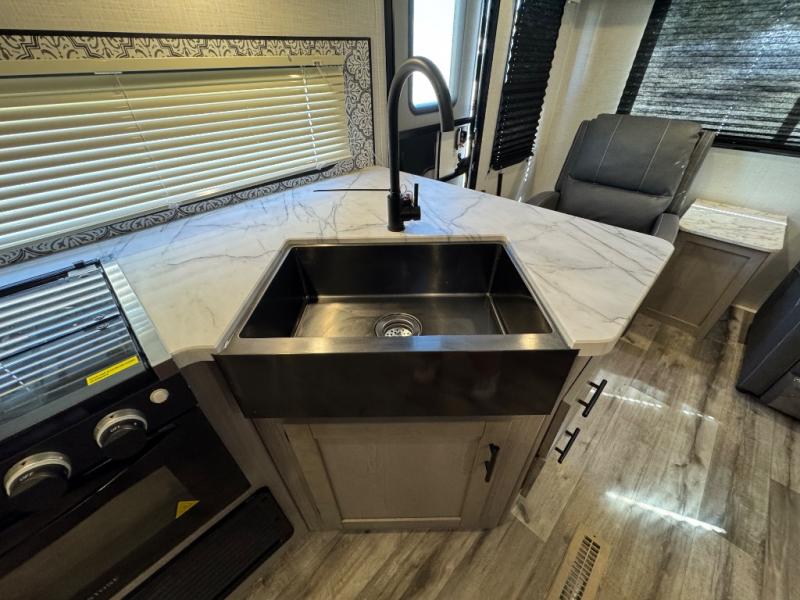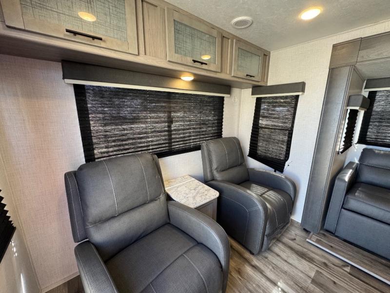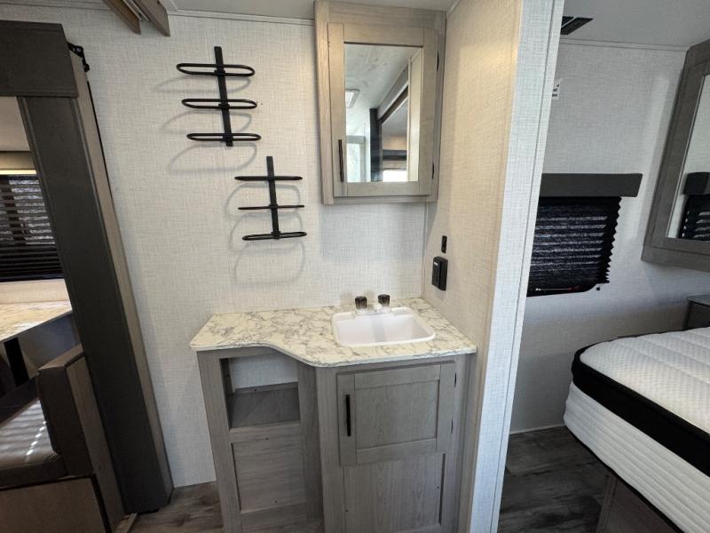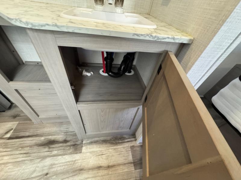 The Dutchmen Coleman Light travel trailer features an upgraded kitchen package with residential appliances, high-rise faucets, and a stainless steel farm-style sink. The fully enclosed underbelly allows all of your trailer's vital functions to be kept out of the freezing cold, and you'll have great stability as you enter your trailer by using the solid entry steps. Each model includes power stabilizer jacks, a power tongue jack, dual 20-LB propane tanks, a residential queen bed, and preparations for Wi-Fi 4G LTE. There is an aerodynamic front fiberglass cap, exterior speakers, solar charging connection, and aluminum wheels.