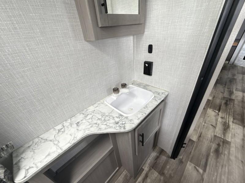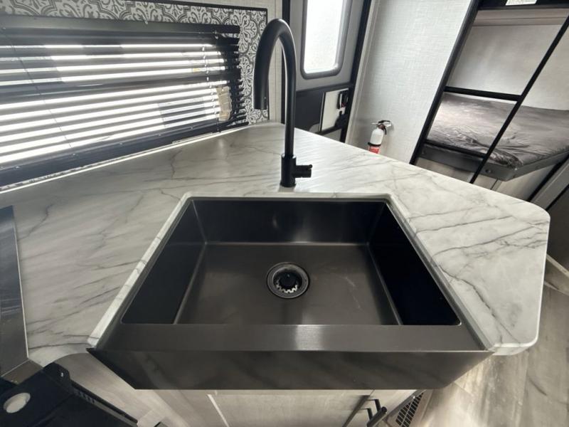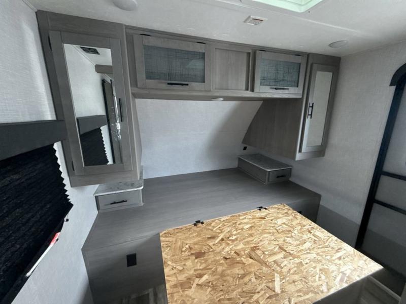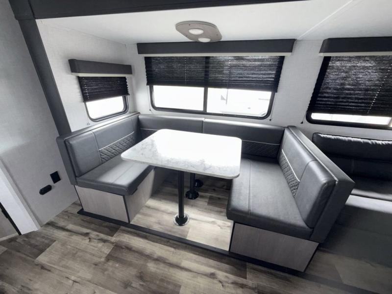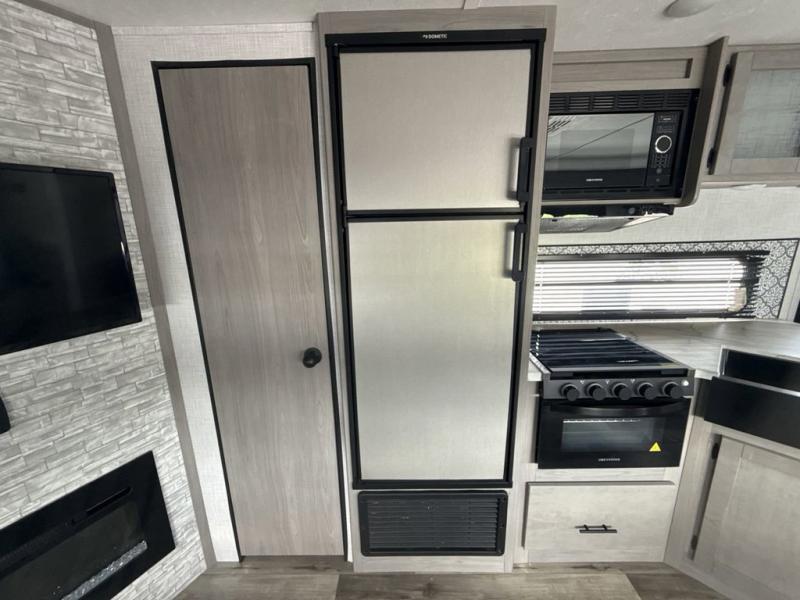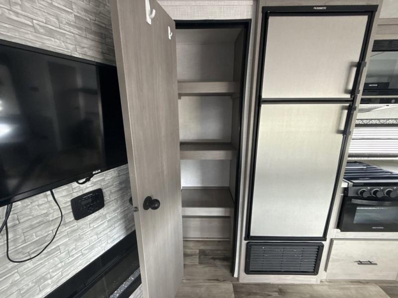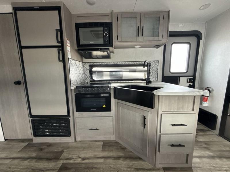 The Dutchmen Coleman Light travel trailer features an upgraded kitchen package with residential appliances, high-rise faucets, and a stainless steel farm-style sink. The fully enclosed underbelly allows all of your trailer's vital functions to be kept out of the freezing cold, and you'll have great stability as you enter your trailer by using the solid entry steps. Each model includes power stabilizer jacks, a power tongue jack, dual 20-LB propane tanks, a residential queen bed, and preparations for Wi-Fi 4G LTE. There is an aerodynamic front fiberglass cap, exterior speakers, solar charging connection, and aluminum wheels.