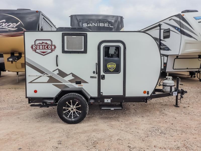 For your lightweight travel, choose any Coleman Rubicon 1200 Series travel trailer by Dutchmen RV. These units are easy to tow with just about any vehicle, and easy to store due to their size. And, both units are under 2,000 lbs. Each features aluminum framing, LED interior lighting, all terrain tires and aluminum rims, plus a single torsion axle for ease of towing. You will also appreciate stabilizer jacks when setting up, a side port for a solar panel. a folding grab handle at the entryway, and baggage doors with magnetic catches to keep your things secure when put away. Come select the model that is right for your family today!