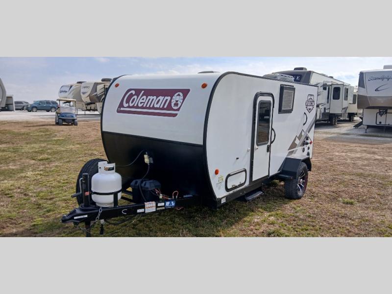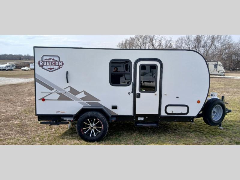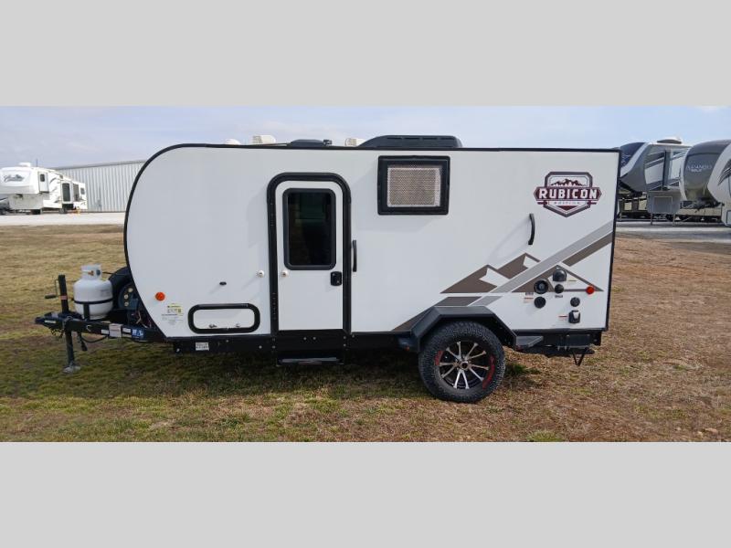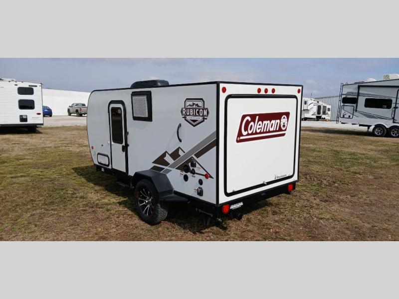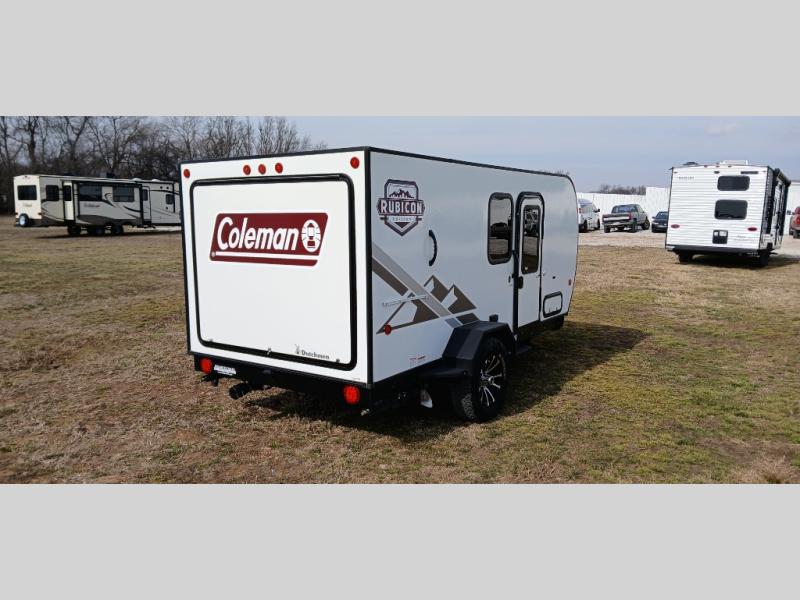 For your lightweight travel, choose any Coleman Rubicon 1200 Series travel trailer by Dutchmen RV. These units are easy to tow with just about any vehicle, and easy to store due to their size. And, both units are under 2,000 lbs. Each features aluminum framing, LED interior lighting, all terrain tires and aluminum rims, plus a single torsion axle for ease of towing. You will also appreciate stabilizer jacks when setting up, a side port for a solar panel. a folding grab handle at the entryway, and baggage doors with magnetic catches to keep your things secure when put away. Come select the model that is right for your family today!