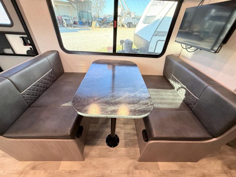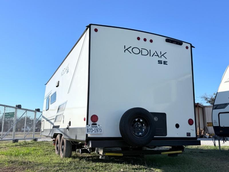 With any Kodiak SE travel trailer by Dutchmen RV, you can experience comfort while camping at a moment's notice. Each trailer includes features such as power front and rear stabilizer jacks, a power tongue jack making set-up easy, and a power awning with LED light. Each model is pet-friendly with the carpet-free slide out floor, tile flooring, and the pet leash D-ring. You can enjoy the wireless Bluetooth speaker, the LED interior and exterior lighting, and the 80" interior height. From the floor structure which includes a fully enclosed underbelly to the laminated walls with aluminum frame and block foam insulation, any Kodiak SE is built lightweight and ready for adventure!