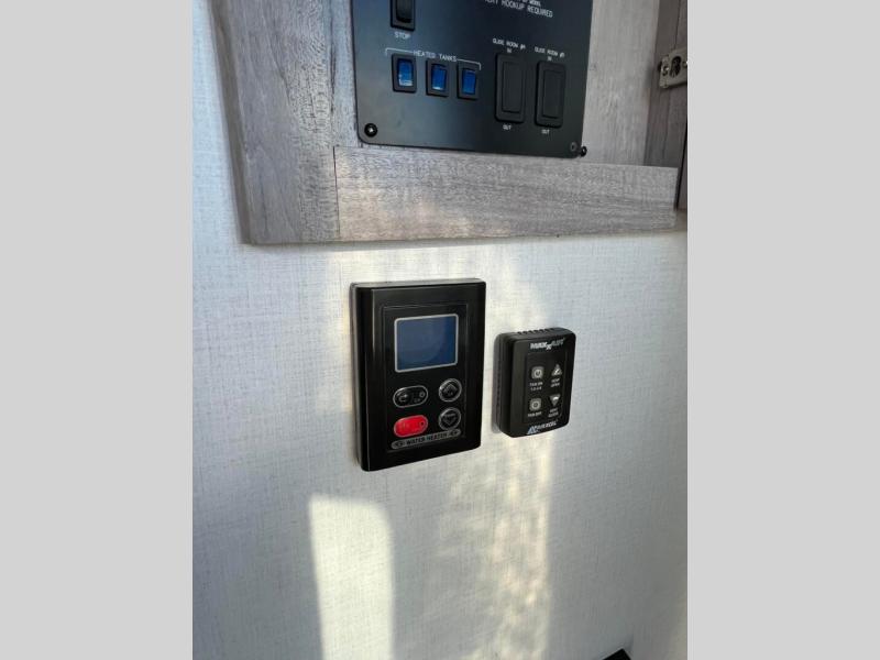 With any Voltage Triton toy hauler fifth wheel by Dutchmen you will appreciate the economical price point while still including many luxury features. The 7' slide boxes provide you with space to stretch out, plus there are oversized windows to let the sun through each morning. Some of the other interior comforts you are sure to love are the pleated night shades throughout the entire coach, the stainless steel kitchen sink, the upgraded heat and massage sofas, and more. Each model includes a 30" residential microwave, a 12 gallon water heater, plus two upgraded A/C's to keep you cool all summer long. The Triton garage is ready to house your favorite toys with 2,500 lb. tie-downs and a Tuff Ply floor, and you can add the optional ramp door patio system for more fun. You will also enjoy the two indoor/outdoor speakers, plus a pull down screen to keep the bugs out when you want to dine at the table.