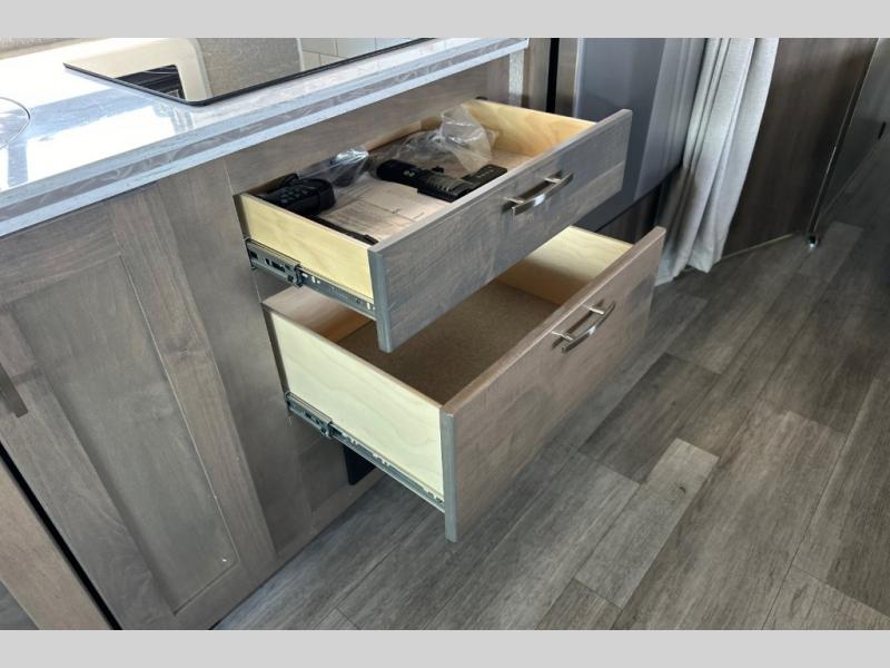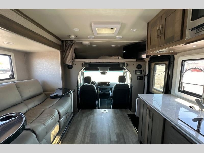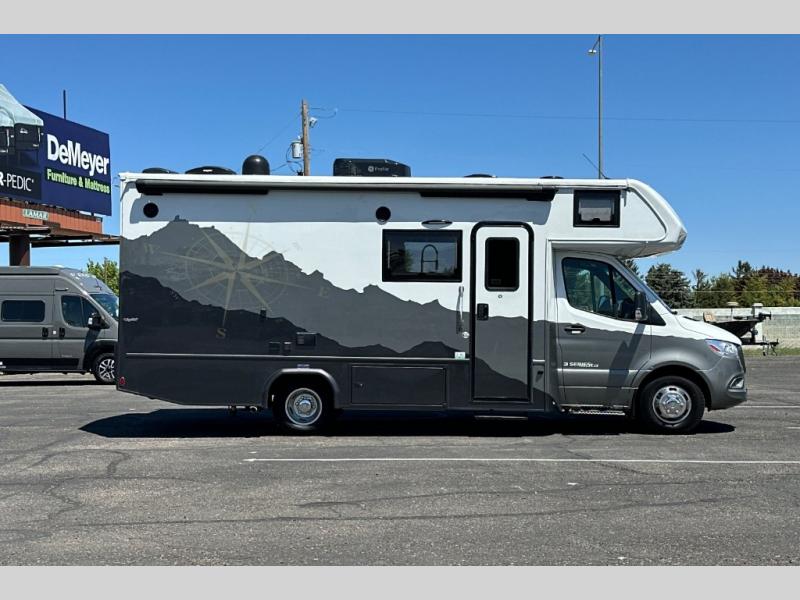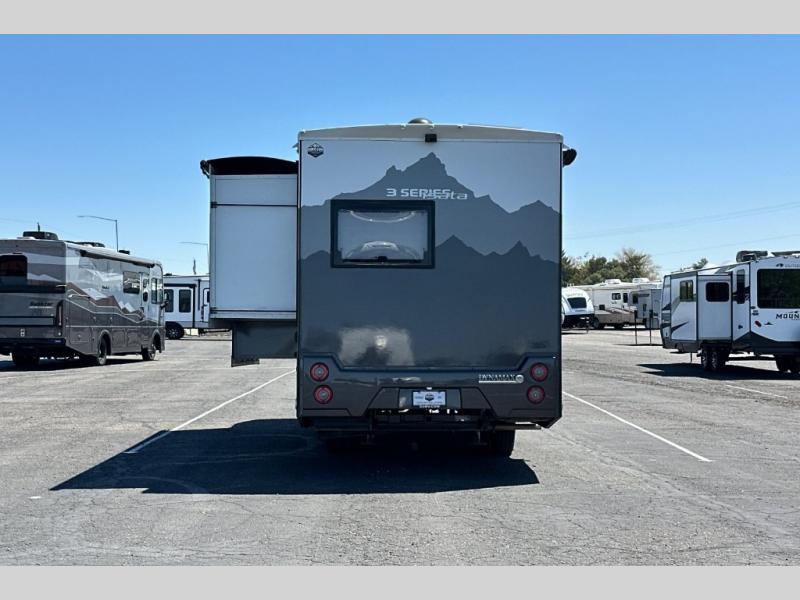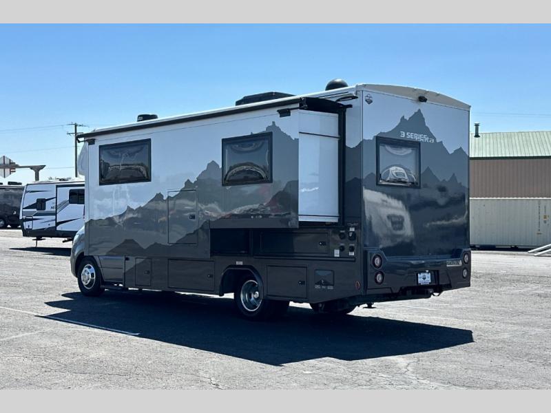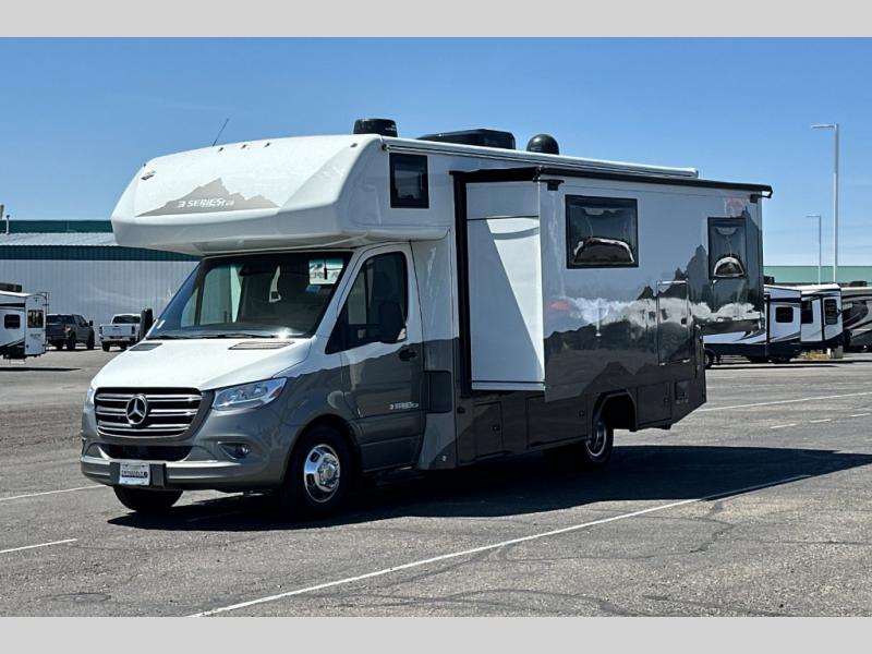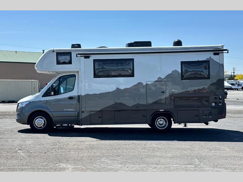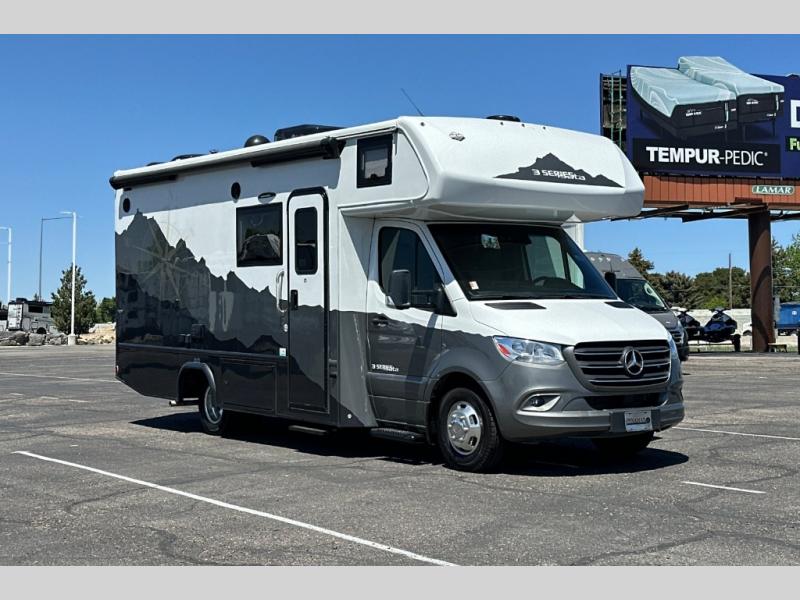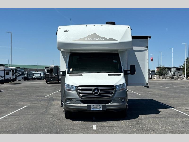 Each one of these Dynamax isata 3 Class C diesel motorhomes were designed to last for years of fun with composite exterior fiberglass with no exterior wood, aluminum-framed roof trusses, and composite flooring substrate. The 3.0L V6 turbo diesel engine is also fuel efficient and a Mercedes-Benz Sprinter chassis holds them together. There is an MBUX 10.25" infotainment system and a quad-view camera system that will let the driver navigate the open road like a pro, and the added safety features are sure to bring you peace of mind. Outside, you'll be wowed by the custom full-body paint package with front-end Diamond Shield paint protection, plus there are exterior speakers, an armless patio awning with LED lights, and seamless rotocast storage compartments for your gear! Each model also includes many interior comforts to make you feel right at home, like the premium vinyl flooring throughout, hardwood craftsman-style cabinetry, solid surface countertops with LED edge lighting and backsplash, and the list goes on!