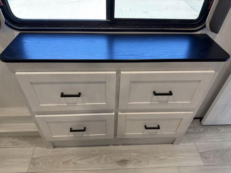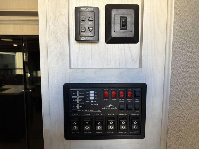 There is just too much luxury to name on the EAST TO WEST Ahara fifth wheel! These units are quite impressive, and once you see them, you'll know what we mean. The Ahara first grabs your attention with its hi-gloss gel-coated fiberglass exterior which showcases two power awnings with LED lights, an LP quick connect, an exterior cable/satellite hookup, and a universal all-in-one docking station. For towing, you'll find a MORryde CRE 3000 suspension, Dexter Gladiator thick-wall 7,000-LB axles with Nev-R-Adjust brakes, nitro-filled G-range tires, and preparations for a rearview camera. Traveling during all seasons is also made easy with the high-efficiency triple A/C system, ductless flooring throughout the living area, a 40,000 BTU high-capacity furnace, 12V heat pads on holding tanks, a heated, insulated, and enclosed underbelly and dump valves with circulating heat, and Radiant Technology Composites insulation in the roof, front cap, and underbelly.