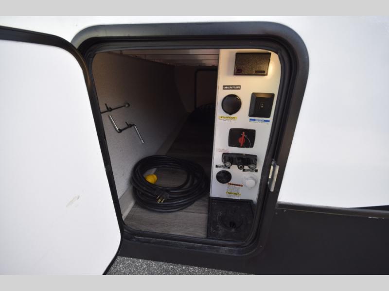 Got a furry friend? This RV is pet-friendly with a built-in pet dish under the fridge and an outdoor spray port to rinse off muddy paws (or feet) after an outdoor adventure.