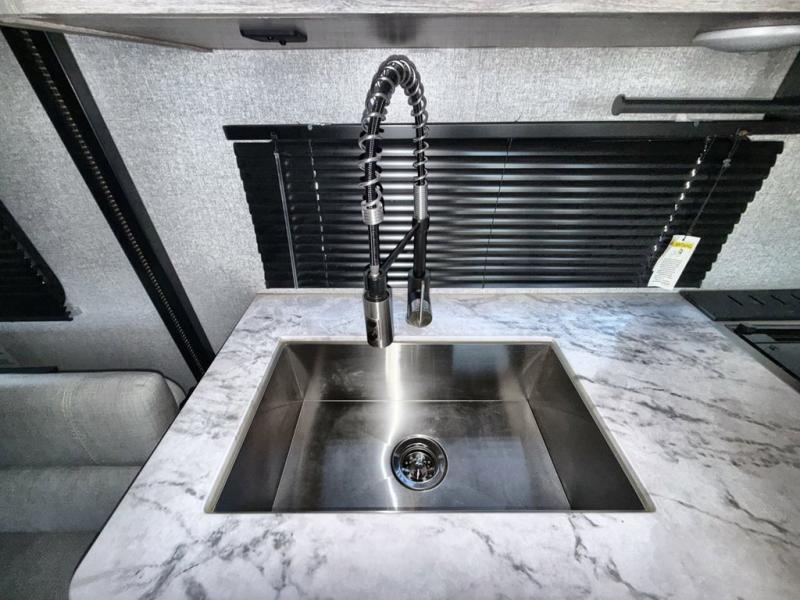 Each Alta travel trailer or toy hauler by EAST TO WEST is constructed with a 5" vacuum bonded roof, flush floor slide outs (where applicable), and diamond plate front rock guard for added protection. Outside, you'll find marine-grade exterior speakers, a universal docking station, and back-up camera prep that can be added to make maneuvering in and out of campgrounds easier than ever. There are USB charging stations for your tablet or phone and designer solid surface countertops you are sure to love. The furnace and 15,000 BTU ducted A/C with quick cool will keep you comfortable in any season, and the 81" interior ceiling height will provide ample space to move about without feeling confined. Start a new adventure in an Alta trailer or toy hauler today!