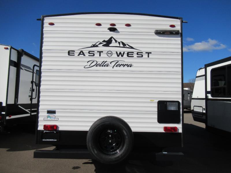 With any Della Terra travel trailers by EAST TO WEST, there is aluminum siding, bowed truss roof rafters, a one-piece seamless DiFlex ll roof, fiberglass insulation throughout, and a fully enclosed and heated underbelly with anti-puncture underbelly allowing you to stay and travel during any climate. The interior offers comfort and convenience throughout with an 81" ceiling height, seamless designer countertops, night shades to be able to sleep in, a sound system with Bluetooth and HDMI connectivity, and an extra large dinette picture window for great views. Choose a Della Terra that fits your camping lifestyle!
