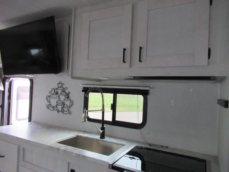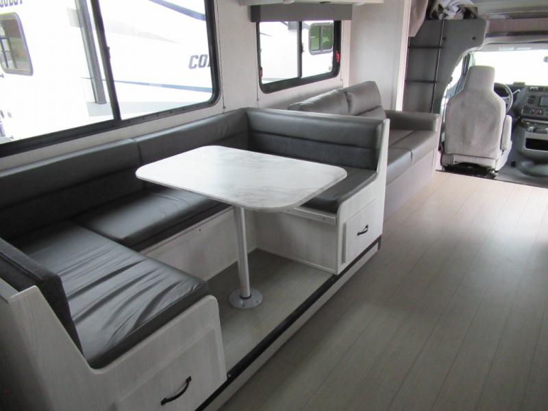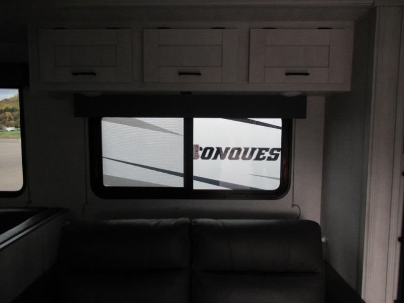 With any Entrada Class C gas motorhome from EAST TO WEST, the construction consists of a completely laminated coach, a one-piece molded fiberglass front cap, 2-inch sidewall and walls with Azdel composite backing, a Dicor Diflex ll TPO roof, and aluminum running boards. Some of the luxury package features include 12V tank heaters to camp during the cooler months, the Winegard Air 360+, plus backup and side view cameras with monitor for safety on and off the road. The interior offers Cold Crack resistant flooring for durability, a 7-foot living height for a spacious interior, and hardwood shaker style cabinets. Choose an Entrada for its tasteful design, attention to detail, bright interior and/or affordable price-point!
