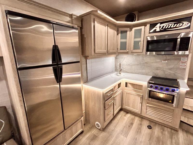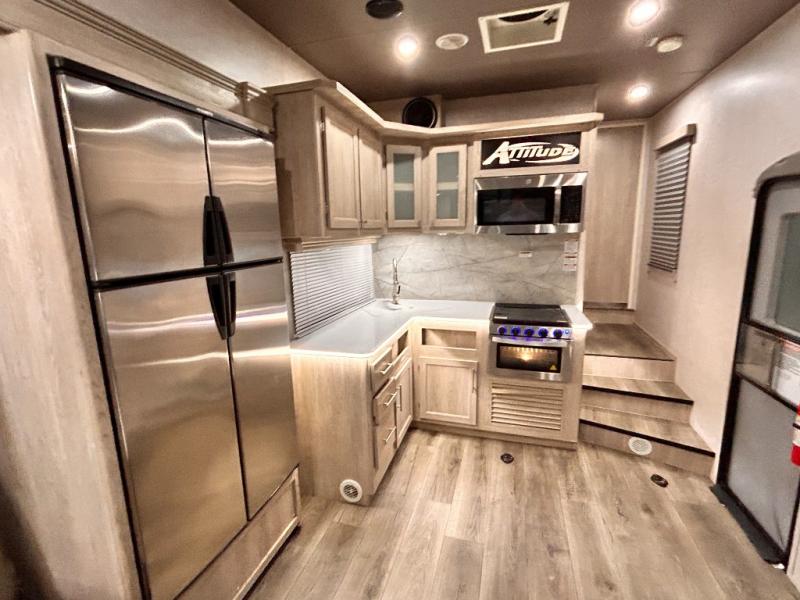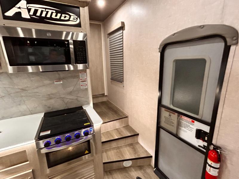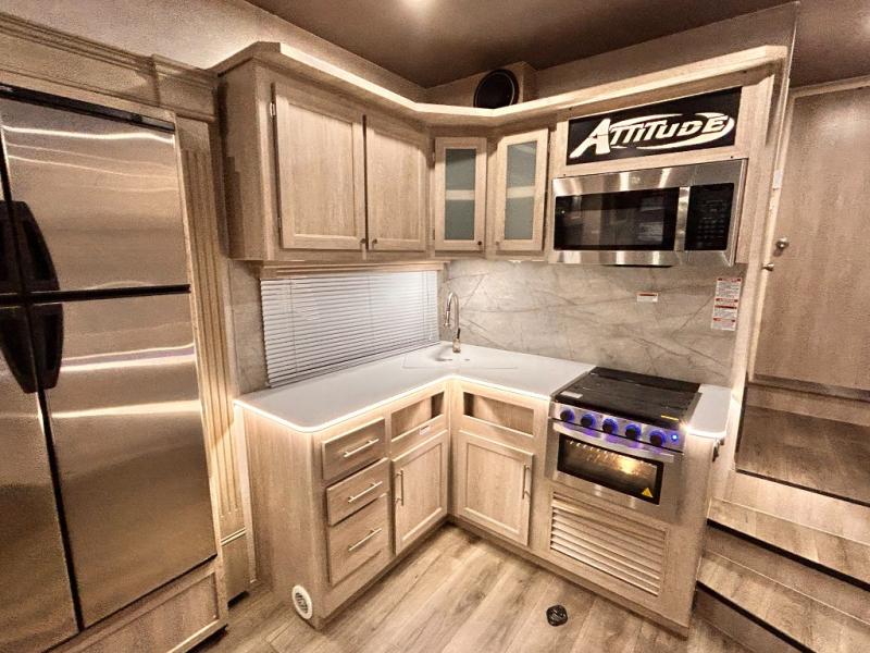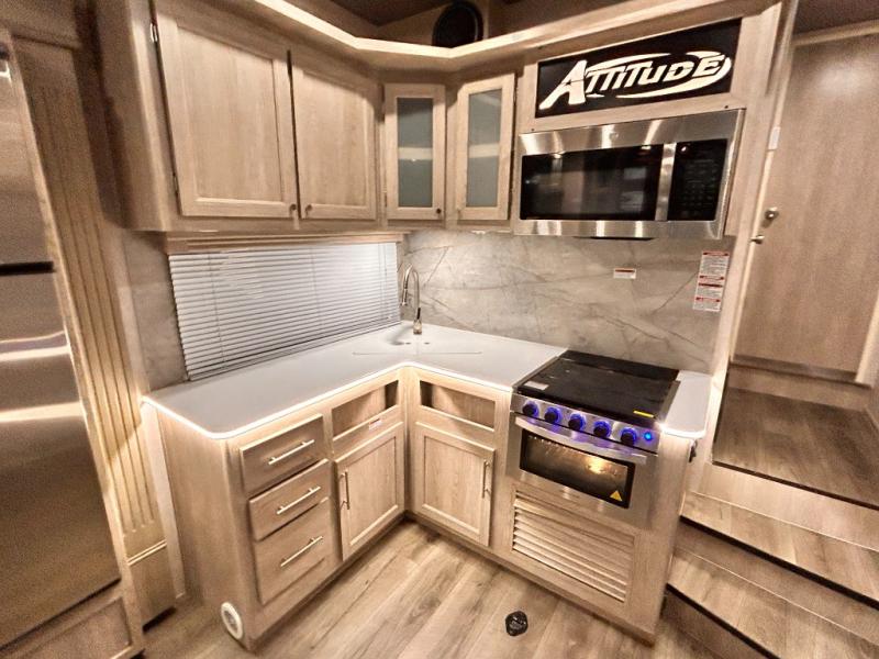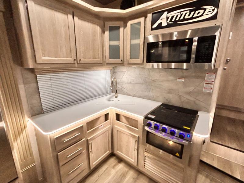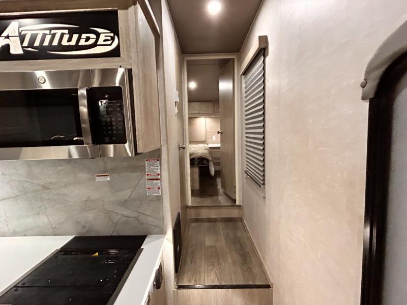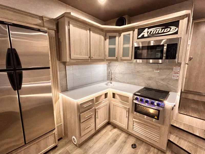 With each Eclipse Attitude Wide Lite toy hauler you begin with a powder coated chassis with laminated, aluminum framed fiberglass sidewalls and fiberglass caps with the front cap having an LED light, and a decked walk-on roof. The 100 AMP lithium LiFePO4 battery/330 watt solar panel, the 40 gallon fuel station, and the 4.0K Onan generator with transfer switch will keep everything up and running when you venture off-grid. The interior offers several colors to choose from to customize your toy hauler, LED lights with a dimmer, versatile sleeping accommodations, and a lighted solid surface galley top. The Hi Rez LED lights, the curbside under glow LED lighting and the Hi Def exterior graphics offer the attitude you are looking for! Make your selection today!