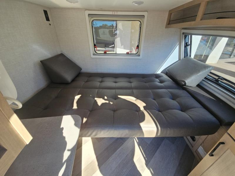 Head to the great outdoors in one of these Ember RV Overland Micro Series travel trailers! The CURT independent suspension comes with heavy-duty coil springs with dual shock absorbers on each wheel. With a heavy-duty off-road tube steel frame and five sided aluminum construction, you can be sure they will hold up for every adventure. You can go to the campsite or go off the grid with Go Power!® 190W rooftop solar panel, 30 amp solar controller, and 1,000W Pure Sine wave inverter. Your units vitals will be protected by the enclosed radiant barrier underbelly and you will be protected by the manual Thule® outland awning. Keep the dirt outside where it belongs with the outside shower, but there's no need to worry if some is tracked inside thanks to the easy to clean Shaw flooring. Come choose your favorite model today!