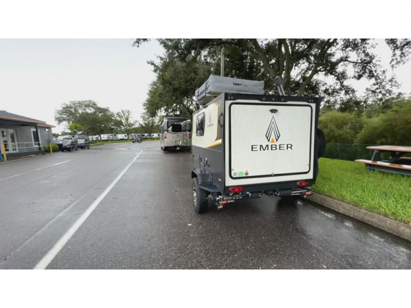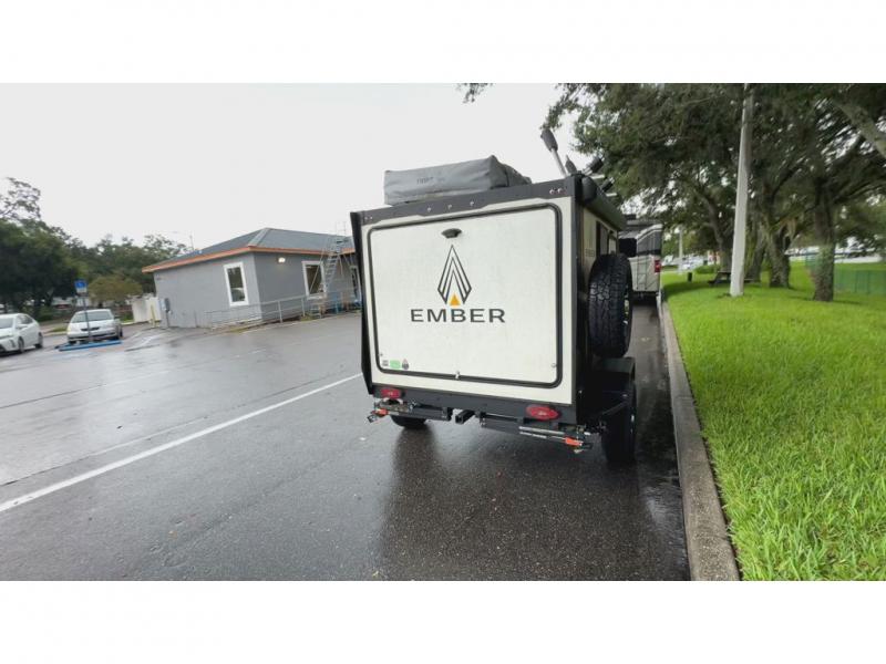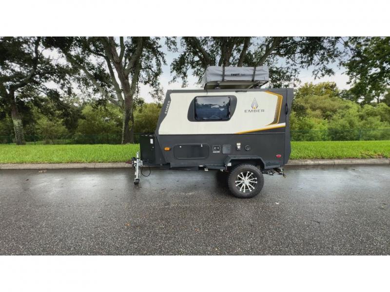 Head to the great outdoors in one of these Ember RV Overland Micro Series travel trailers! The CURT independent suspension comes with heavy-duty coil springs with dual shock absorbers on each wheel. With a heavy-duty off-road tube steel frame and five sided aluminum construction, you can be sure they will hold up for every adventure. You can go to the campsite or go off the grid with Go Power!® 190W rooftop solar panel, 30 amp solar controller, and 1,000W Pure Sine wave inverter. Your units vitals will be protected by the enclosed radiant barrier underbelly and you will be protected by the manual Thule® outland awning. Keep the dirt outside where it belongs with the outside shower, but there's no need to worry if some is tracked inside thanks to the easy to clean Shaw flooring. Come choose your favorite model today!