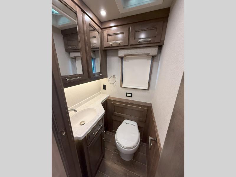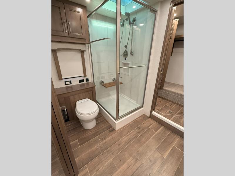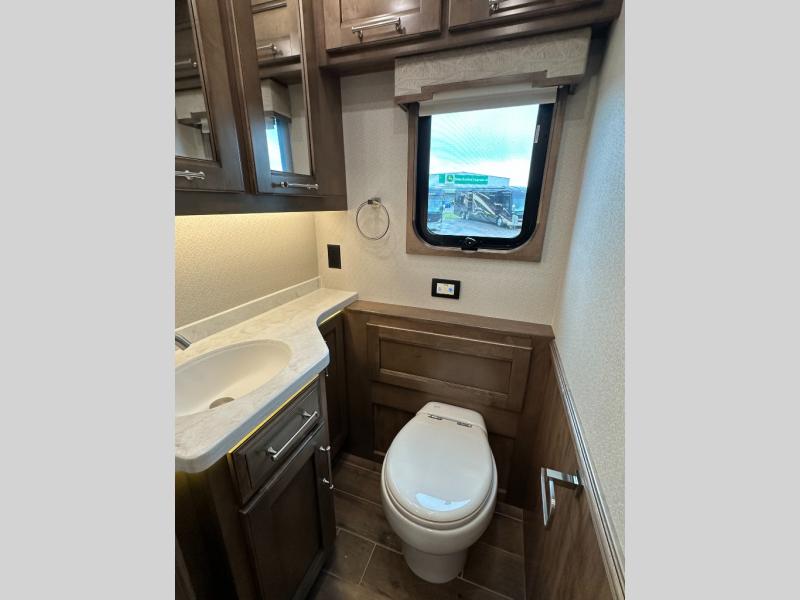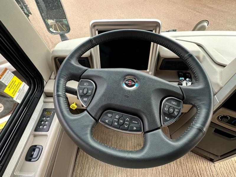 With any Aspire Class A diesel motorhome by Entegra Coach you will enjoy a smooth ride thanks to the Spartan K2 raised-rail chassis, the independent front suspension, and the E-Z Steer adjustable power steering assist. The leather captain's seats include 6-way power adjustment, lumbar and footrest functions that will have you sitting in the lap of luxury, plus there is a Valid infotainment system with a 15" touchscreen and a 360 degree camera system for easy maneuvering. You'll find many high-end features inside, including a Teakwood shower seat in the bath, a decorative ceiling feature, solid surface countertops with dimmable LED accent lighting, and premium Crown Compass furniture. The Aspire also features exterior amenities that will make being on the road easier than ever. The push-button, power-unlatching baggage doors let you unload in record-time, and the Girard awnings will provide tons of shade to relax outdoors. There are also two 190W solar panels, a Winegard WiFi Range Wi-Fi extender, a heated utility center, and much more!