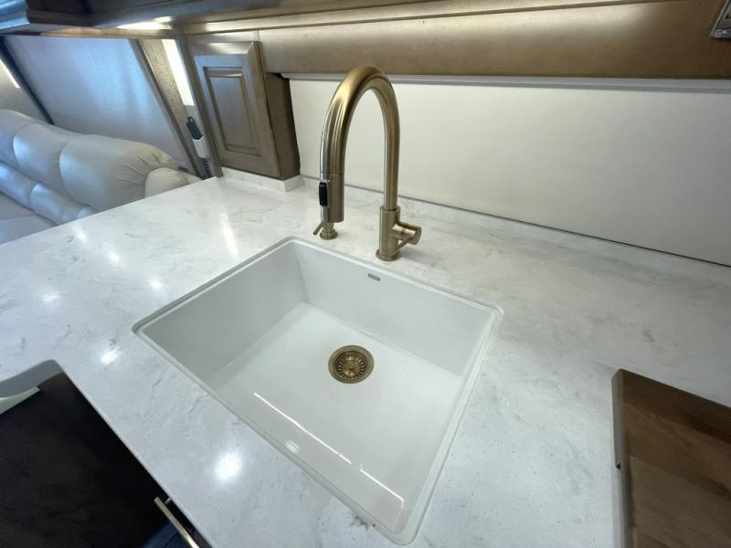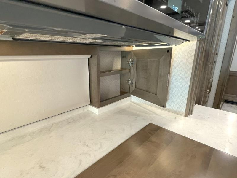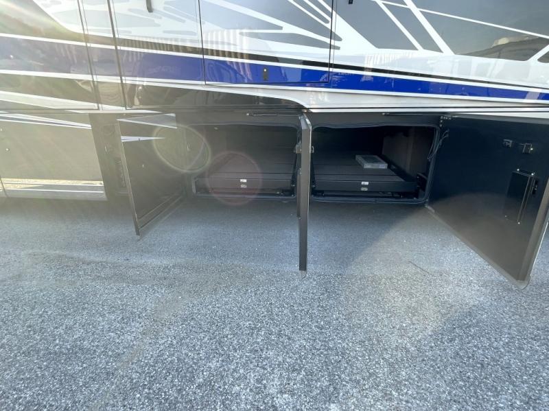 This coach rides on the proven Spartan K3 raised-rail chassis and is powered by a Cummins 605 HP diesel engine for confident towing and hill-climbing. It features a premium safety suite, including: