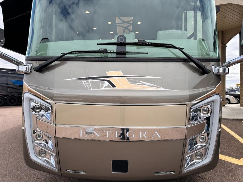 Each Cornerstone Class A diesel motorhome by Entegra Coach is packed with luxury features to make each trip memorable! The Spartan K3 raised-rail chassis provides a strong foundation, and the Cummins 605 HP engine can power your many excursions. You will appreciate the collision avoidance system with collision warning, adaptive cruise control, and electronic stability control, plus there are six HD cameras included in the surround view system for easy maneuvering in and out of campgrounds. The interior is designed to make you feel at home with premium leather Villa furniture, hand-laid porcelain tiled floors, a Select Comfort Sleep Number king-size mattress, and many more residential features. The luxury-packed amenities don't stop there! Outside you'll find a heated exterior utility center, two power slide out basement storage trays, an exterior Dometic refrigerator/freezer, plus a Sikkens custom full-body paint that is sure to turn heads!