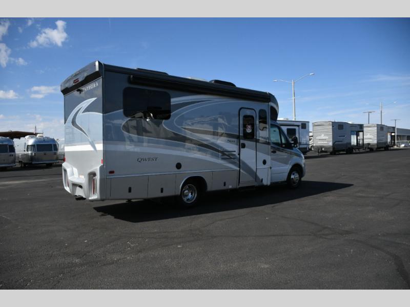 The Qwest 24N maximizes every inch of space while providing premium features typically found in larger motorhomes. Its Murphy bed and cab-over bunk provide flexible sleeping solutions, while the modern kitchen and full bathroom make life on the road comfortable and practical. Exterior features like the awning, outside shower, and utility center expand your living space and make outdoor enjoyment effortless.