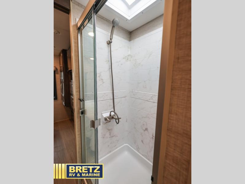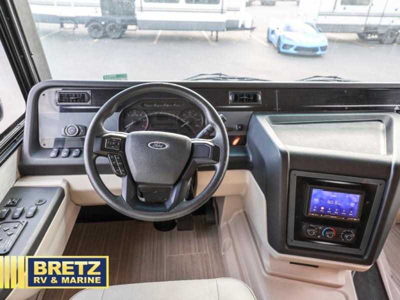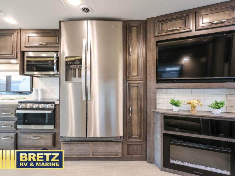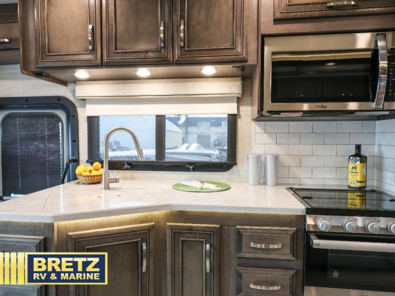 You'll have quite the adventure touring the country in this Vision XL Class A gas motorhome! Go out alone, or invite a few extra travelers to join you and crash on the 93" power reclining sofa or 42" x 70" booth dinette. You can even add some more sleeping space for friends or kids by choosing the drop-down overhead bunk option. It will be a piece of cake to enjoy a piece of cake because the Furrion all-in-one cooktop and oven, the residential refrigerator, and the residential microwave will give you everything you need to prepare a batter and bake it. You can even keep some sugar and flour stored in the pantry. You'll also be able to stay entertained throughout each trip by using the 39" LED HD Smart TV in the living area, the LED HD Smart TV in the bedroom, and the exterior LED HD Smart TV.