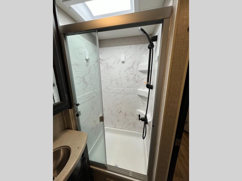 What a fun time you'll have exploring, socializing, and venturing out to new destinations in this Vision XL Class A gas motorhome! There is plenty of space on the interior to spread out and relax with the full-wall slide and the opposing slide in the living area, and you will be able to invite friends in to hang out since you can offer them seating on the 42" x 70" booth dinette, 60" theater sofa, and 60" tri-fold sofa. Play a group game, or put on the football game with the 50" LED Smart TV. After you've entertained everyone, you can retire to your own RV king bed back in the private bedroom. And you can even invite your friends to stay the night if you want because the dinette and sofa will provide some extra sleeping space.